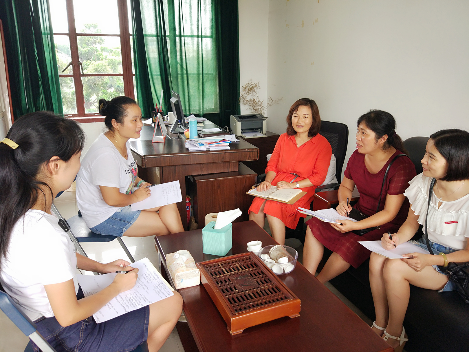 2017年9月8上午十点,全体思政部教师在系部506会议室召开了新学期第一次工作会议。思政部伊文婷主任在会上布置了本学期思政部重点工作:筹备成立马院、成立福建师德建设研究中心、建设"毛泽东思想与中国特色社会主义理论体系概论"精品在线开放课程及课程资源、编写出版"思想道德修养与法律基础"教材辅助读本、进行"形势与政策"课程的网络教学改革等等。在会上,全体教师还共同讨论了辩论社、马列经典读书社学期活动计划等。此外,伊主任还对本学期的教学常规、教学要求等方面进行了布置,并商定了本学期外出交流计划。