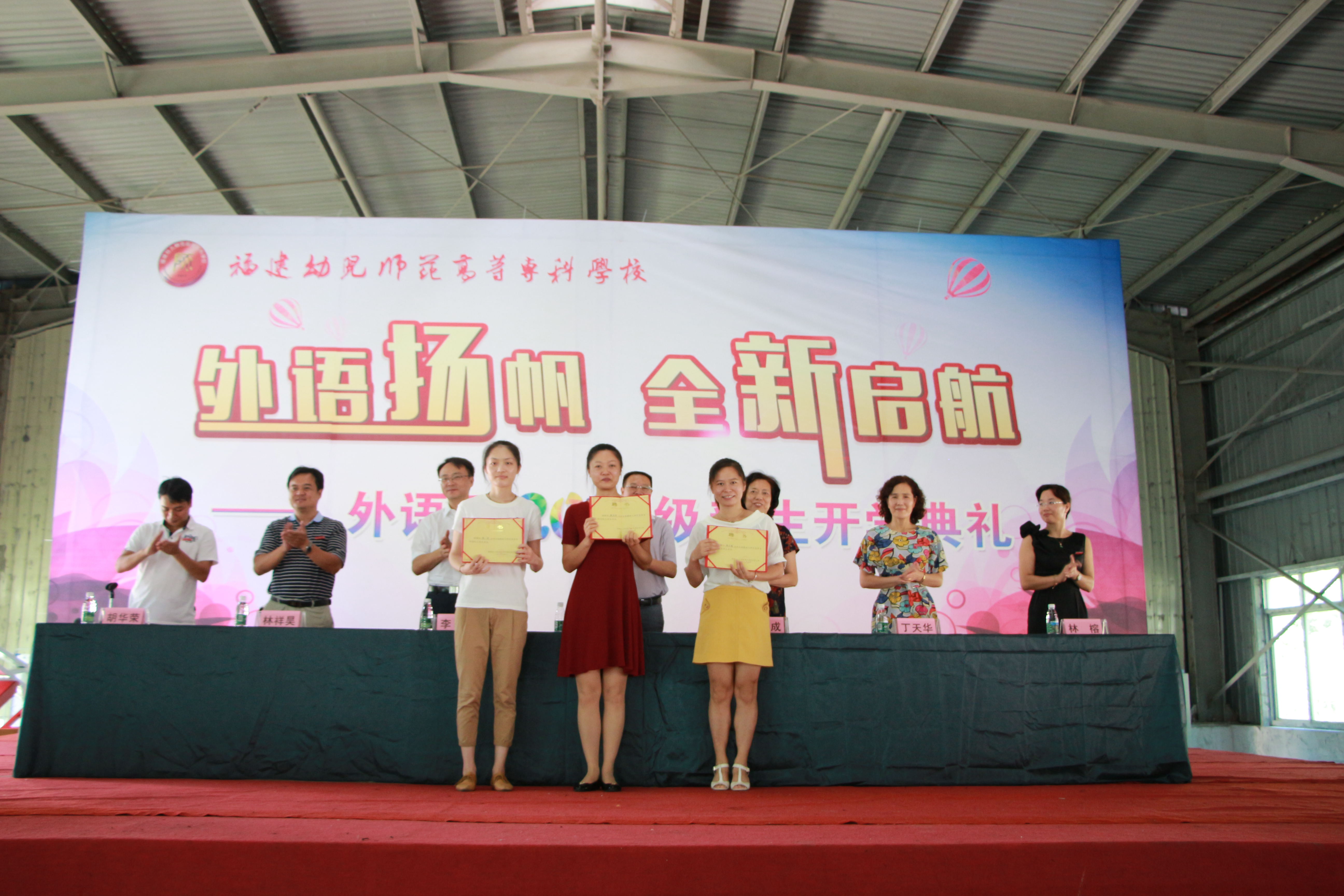 伴随着庄严嘹亮的国歌,外语系2017级新生开学典礼拉开了序幕。郑健成校长首先致辞,她饱含深情地回顾了学校百年师范教育办学历史和外语系的创办历程,介绍了我校雄厚师资力量和办学成果,勉励同学们志存高远、勇于创新、脚踏实地地经营好大学生活。接着外语系丁天华主任代表系部致欢迎词,她对我系的专业师资、专业课程设计、与校外单位合作情况、著名校友等都做了介绍,并对全体新同学提出了期许和祝福。紧接着,教师代表陈文华副教授诚挚地给予新生三点感悟分享:学会适应、学会尊重,学会面对挫折;老生代表马思群同学分享了自己的经验与建议;方欣悦同学作为新生代表表达了对领导老师的感谢以及对大学的憧憬。典礼最后,林祥昊书记宣读2017级新生导师任职名单,校领导为2017级新生导师陈文华、张小莉、林凌三位老师颁发聘书。