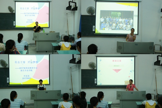 金秋送爽,外语系迎来了2017级新生。为了让新生们尽快完成从中学生到大学生的转变,更好的了解自己所学的专业,坚定专业思想,适应大学生活。我系于9月24日上午,在金山校区101教室为英语教育专业的新生们举行新生入学专业导航讲座。