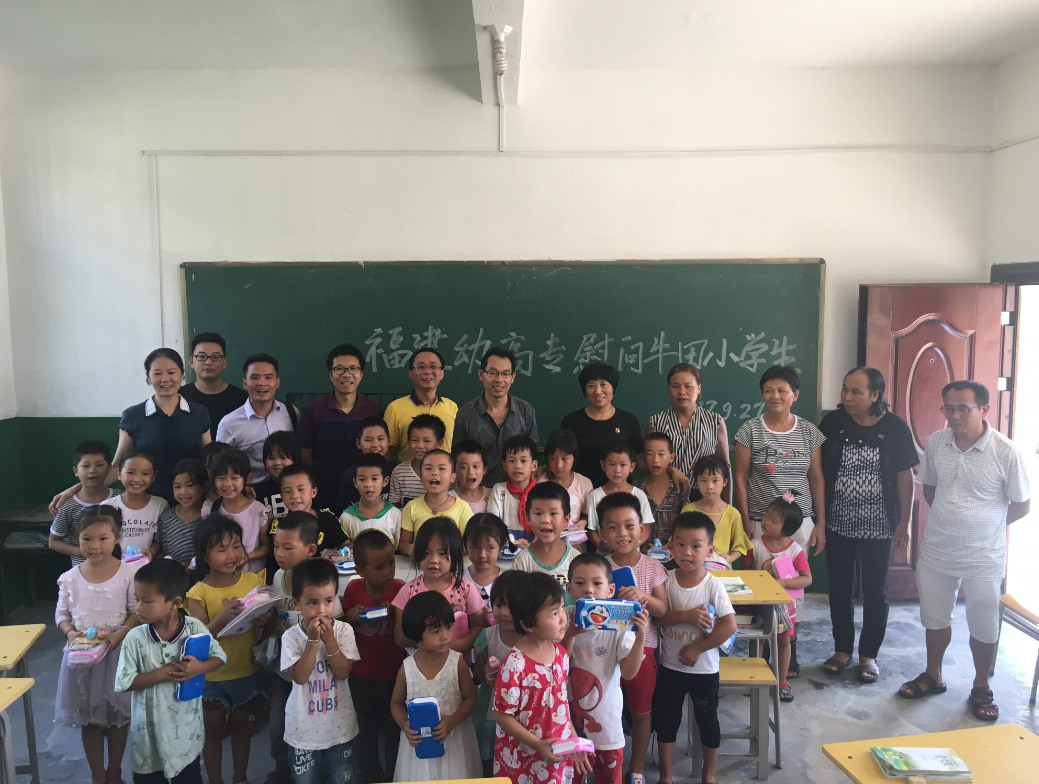 与牛田小学师生合影