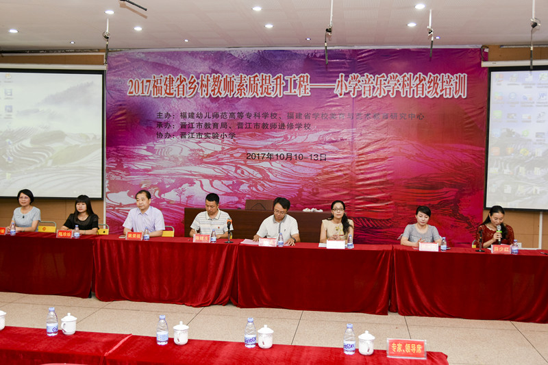 开班仪式由福建幼儿师范高等专科学校培训中心薛少红主任主持,学校党委副书记、纪委书记,晋江市教育局局长陈建生,福建省学校美育与艺术教育研究中心副主任王萍萍教授,晋江市教师进修学校姚荣祖校长等领导参加开班式。