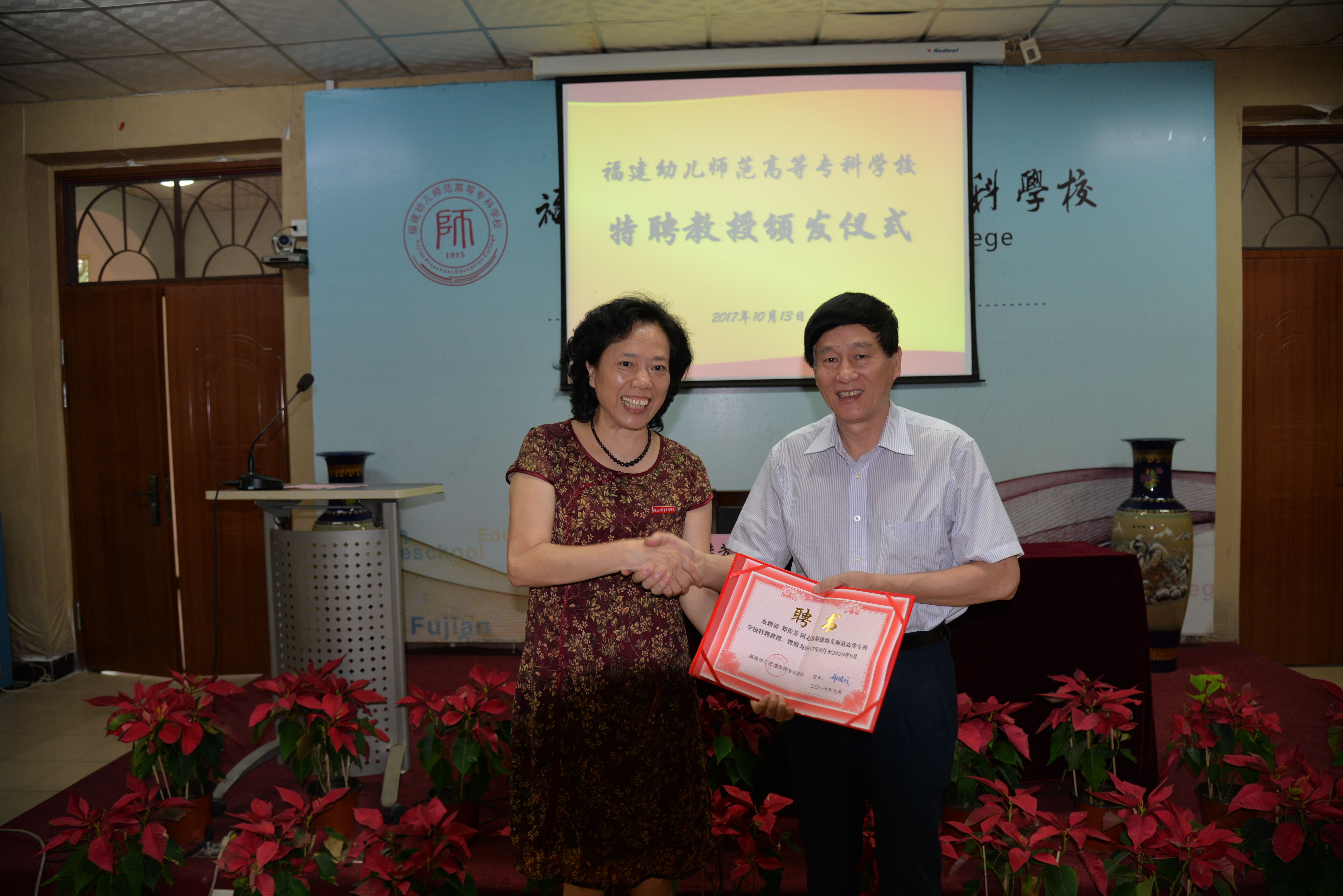 郑健成校长为郑传芳教授颁发我校"特聘教授"聘书
