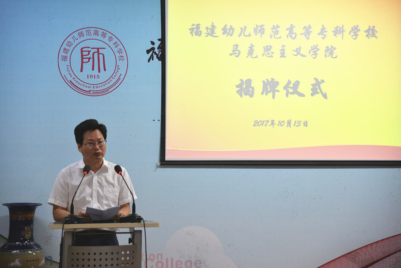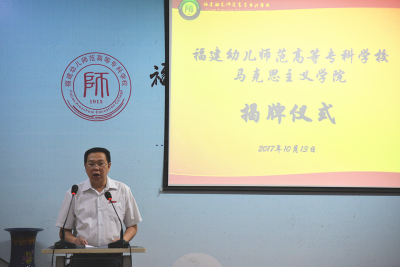 10月13日,我校马克思主义学院揭牌仪式暨福建师德建设研究中心成立大会在校部楼101报告厅隆重举行。中共福建省委教育工委副书记王建南,高校思想政治理论课教学指导委员会主任委员郑传芳,中共福建省委教育工委思政处处长陈晓风,兄弟院校同仁,校党委书记鲍仕梅,党委副书记、校长郑健成,党委副书记、纪委书记,党委委员、副校长郑晓生,机关相关职能部门,各系负责人,马克思主义学院领导班子,师生代表等出席揭牌仪式。仪式由校党委工作部部长黄晖主持。