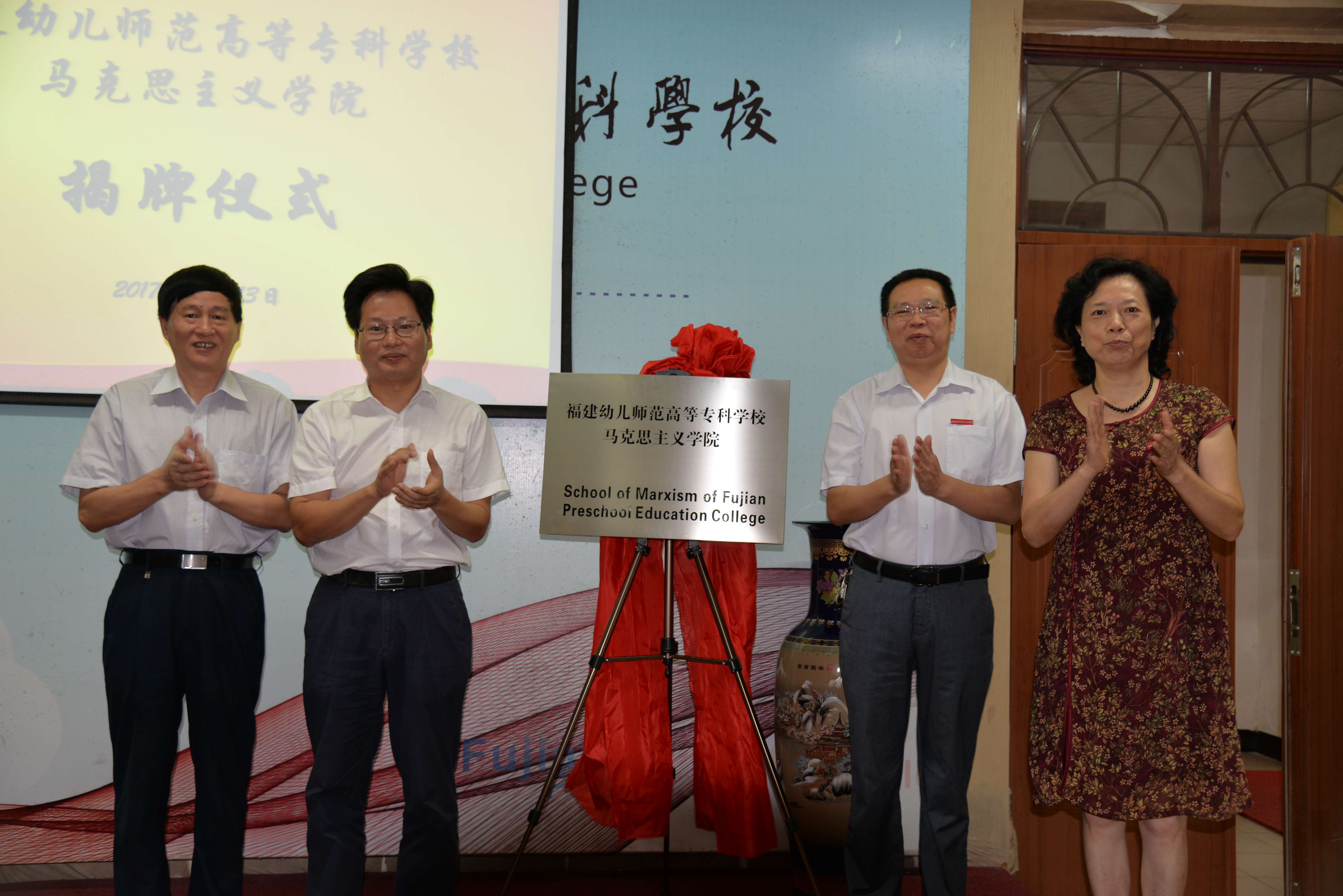 在热烈的掌声中,校长郑健成宣读了关于马克思主义学院成立的文件。省委教育工委副书记王建南,高校思想政治理论课教学指导委员会主任委员郑传芳、校党委书记鲍仕梅、校长郑健成共同为马克思主义学院揭牌,福建师德建设研究中心也相应成立。