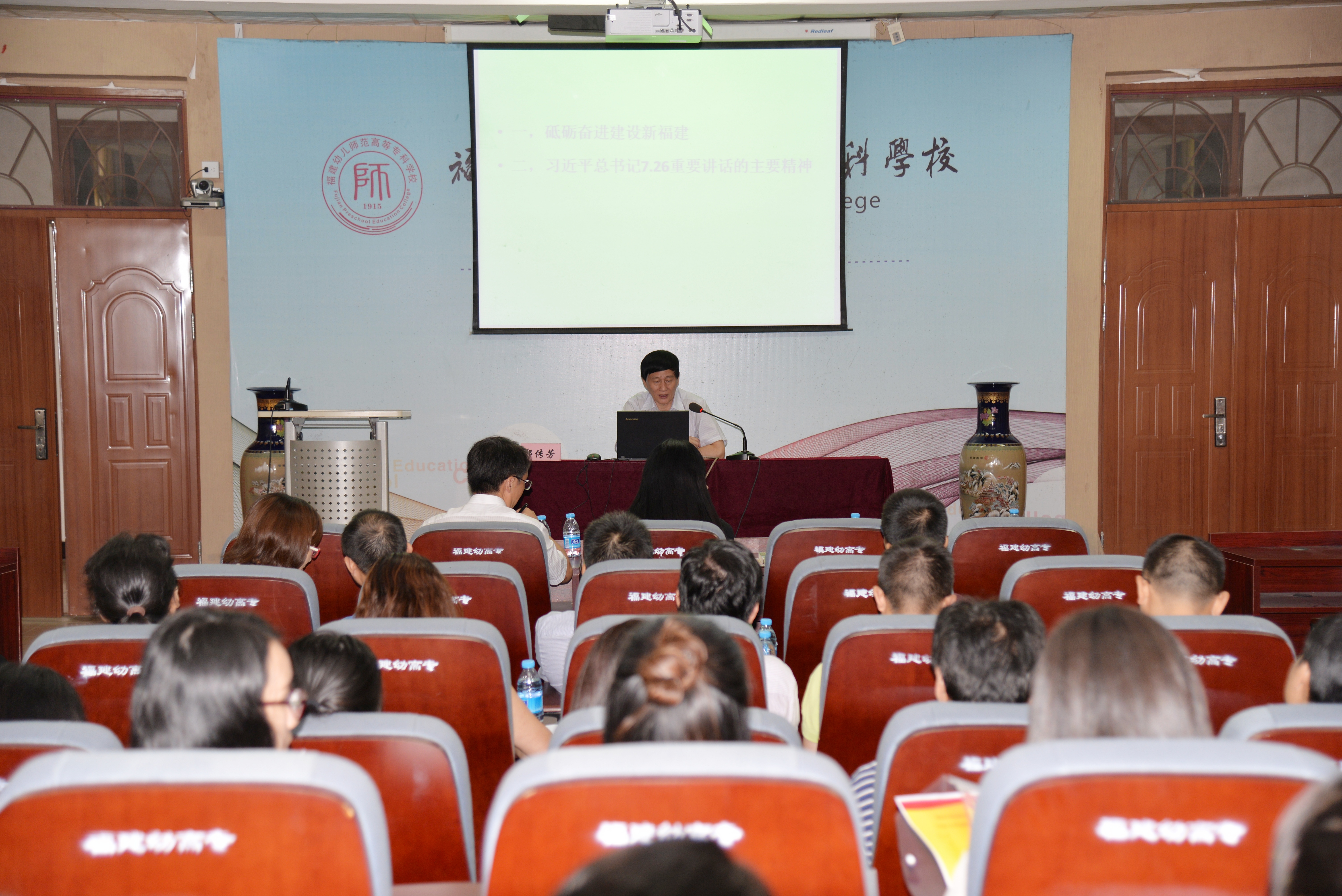 郑传芳教授围绕2016年11月23日省委书记尤权在中国共产党福建省第十次代表大会上的报告和2017年8月22日尤权书记在人民日报发表的文章《奋力推进新福建建设》,为全体党员讲述新福建建设;随后,他着重讲解了党代会召开前的两个重要讲话精神和习近平总书记"7.26"重要讲话的主要精神,号召全体党员学习贯彻习近平总书记"7.26"重要讲话精神,以新的精神状态和奋斗姿态把中国特色社会主义推向前进,以新福建建设的新成就迎接党的十九大胜利召开!