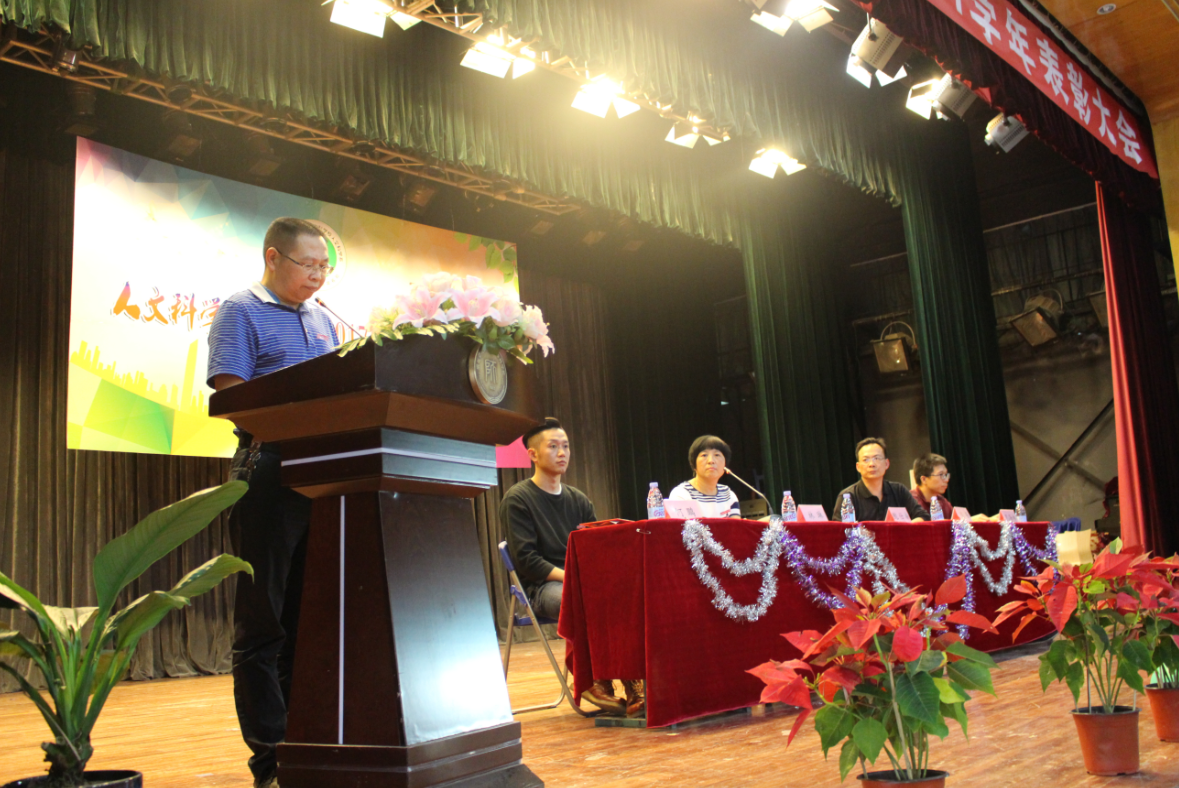 秋风送爽解暑意,硕果累累沁人心。2017年11月3日,人文科学系在学校礼堂隆重召开师生表彰大会,全系师生参会。校党委鲍仕梅书记出席我系表彰大会,大会由人文科学系党总支书记林琳主持。