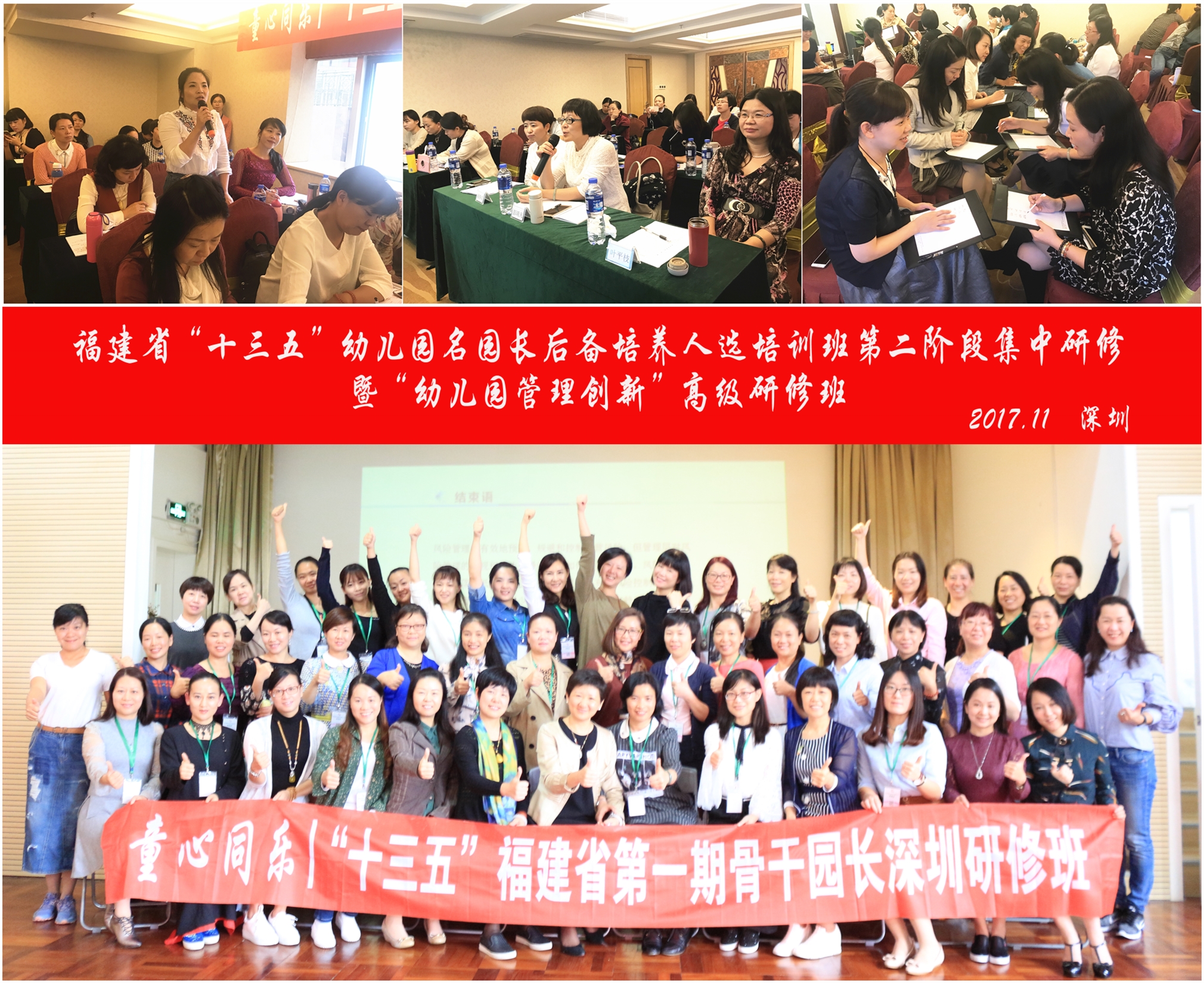 2017年11月11-17日,由福建省教育厅主办,福建幼儿师范高等专科学校承办的福建省"十三五"幼儿园名园长后备培养人选培训班第二阶段集中研修暨"幼儿园管理创新"高级研修班在深圳举行。