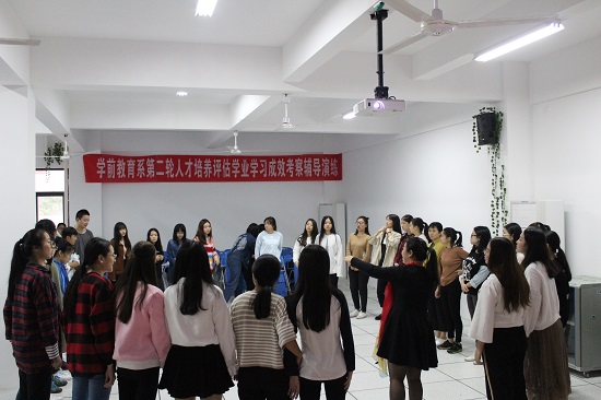为了进一步推进学前教育系大学生学习能力和综合素质不断提升,迎接学校第二轮人才培养评估关于大学生学业学习成效的考察,提升师范生学业素养及教育能力。2017年11月18日上午,由福建幼儿师范高等专科学校学前教育系主办的"2017福建幼儿师范高等专科学校学前教育系第二轮人才培养评估学生学业学习成效考察辅导演练"在学校综合楼三楼312举行。