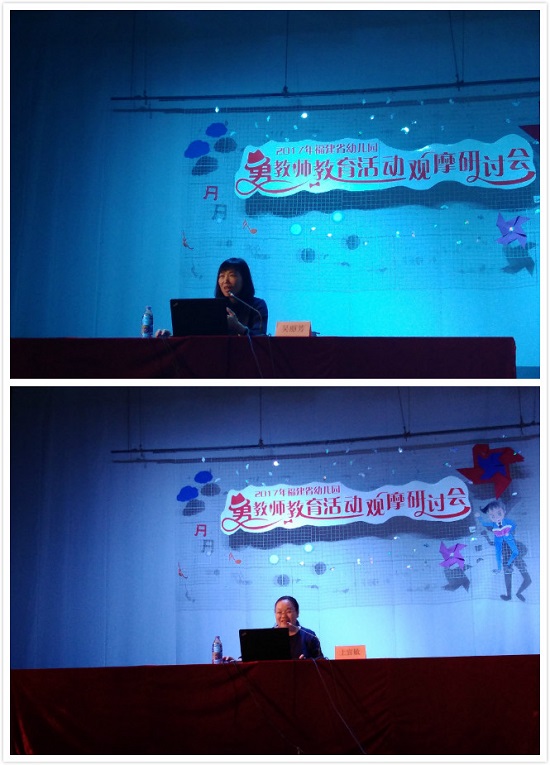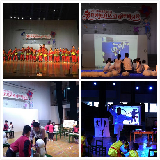 之后,10个观摩活动在内容、形式、方法等多方面展示了男幼师的创意与阳刚:我校附属第一幼儿园陈旻老师带来的音乐活动《大圣归来》,通过巧妙引入动画内容,在情境创设与师幼互动等方面给大家带来耳目一新的感受;厦门海沧区新阳幼儿园龚建康老师和汪太建老师的手工活动《黑暗之光》和语言活动《解救美人鱼》,分别在运用光影艺术提高幼儿创作和表演的兴趣上和以机器人为媒介激发幼儿想象力和语言天赋上,给与会代表带来了新的拓展体验;融侨杰座幼儿园尹立群老师带来的美术欣赏活动《云的衣裳》,充分呈现了运用信息技术和艺术造型创意欣赏的乐趣;此外,在附属第一幼儿园毕业实习的林士凯和在附属第二幼儿园毕业实习的林辉两位同学,以在校男生、实习教师身份给与会代表分别带来了语言活动观摩和体育活动观摩,以清晰的环节流程、多样化的教学手段、有效的师幼互动展示了优师班男教师扎实的基本功。。