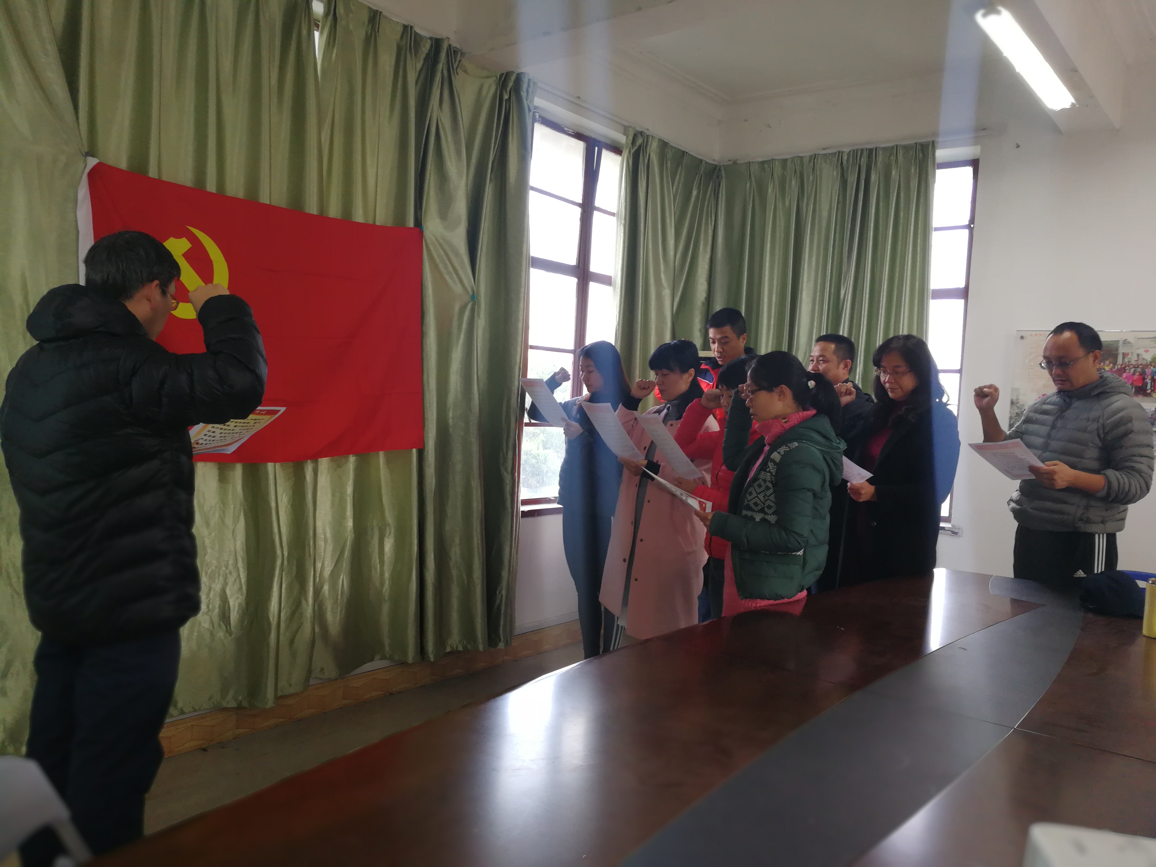 12月22日下午,公共教学部党支部组织全体党员教师举行重温入党誓词仪式。全体党员面向党旗,整齐列队,大家举起右拳,高声宣读入党誓词。铿锵有力的宣誓声,表达了全体同志坚定政治信念和时刻不忘初心、矢志永远奋斗的坚定决心。宣誓仪式后,全体党员教师结合近期自身学习宣传贯彻十九大精神的情况,谈了自己的学习体会。