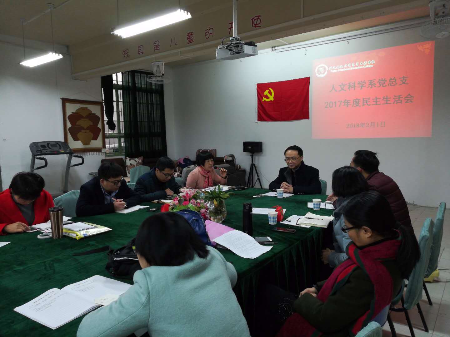 按照闽幼高专党〔2018〕9号《中共福建幼儿师范高等专科学校委员会关于开好2017年度处级以上党员领导干部民主生活会的通知》的要求,2018年2月1日上午,人文科学系党总支以认真学习领会习近平新时代中国特色社会主义思想,坚定维护以习近平同志为核心的党中央权威和集中统一领导,全面贯彻落实党的十九大各项决策部署为主题,在B206会议室召开2017年度民主生活会。校党委副书记、纪委书记同志出席会议并做点评讲话,系总支委员林琳、陈强、周海林、许燕频、林建晦参加会议,人文科学系副主任(主持工作)姜平及系党总支的两个基层党支部书记等列席会议。会议由系党总支书记林琳同志主持。