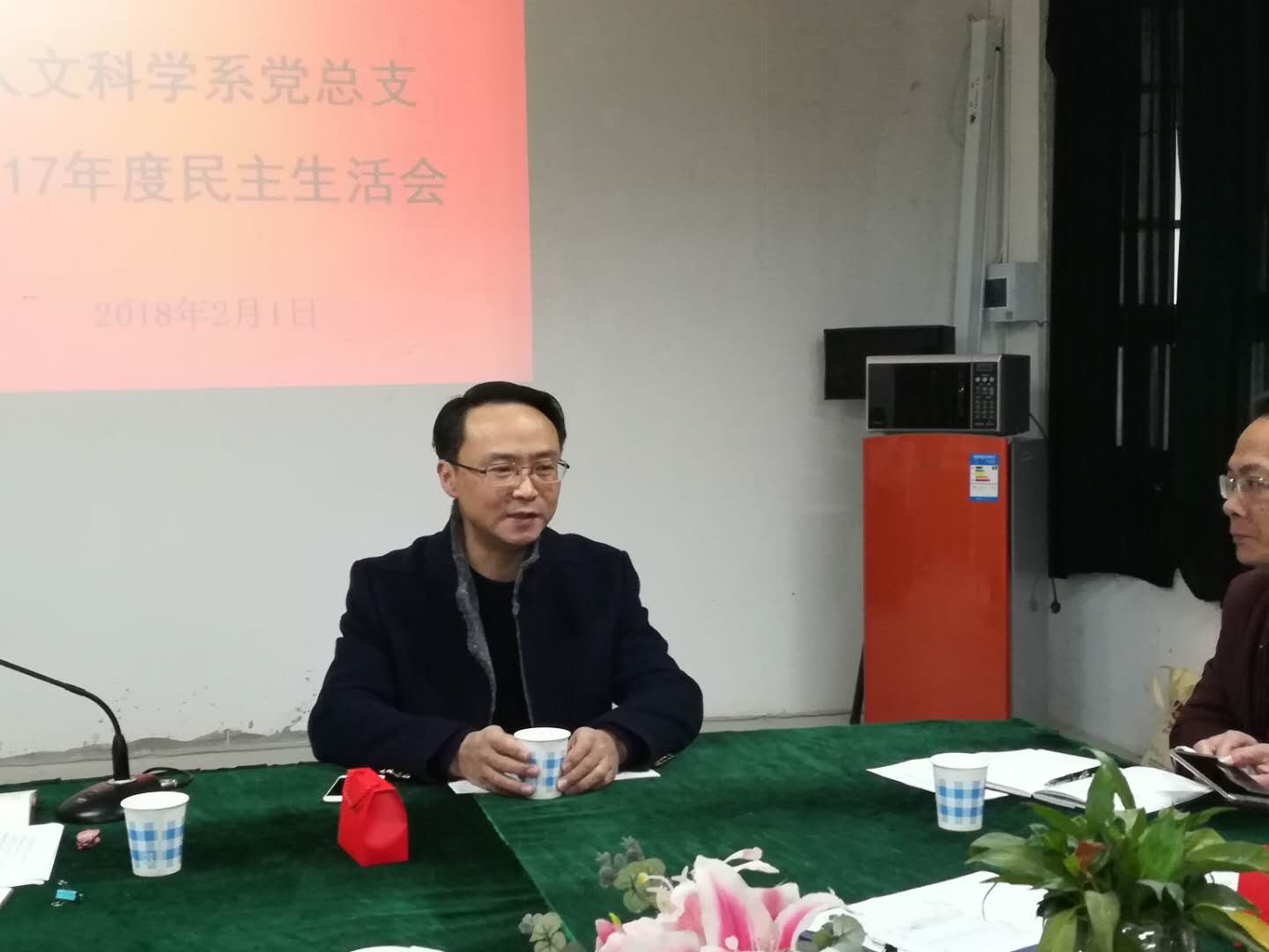 人文科学系党总支委员民主生活会现场