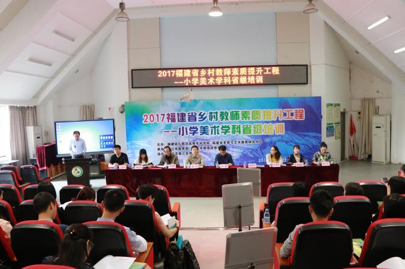 出席第二阶段开班仪式的领导、专家有学校党委副书记、纪委书记,西南大学美术学院胡泊教授,学校培训中心主任薛少红,省学校美育与艺术教育研究中心副主任、艺术系党总支书记王萍萍教授,艺术系副主任林俊卿副教授,晋江市教育系统专职副书记蔡朝阳、晋江市教师进修学校副校长陈淑端等领导,以及来自八闽大地的50名培训学员和来自晋江市各小学的200多位美术教师。