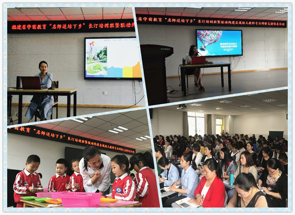 本次活动既是我校承担我省学前教育名师送培下乡活动的第36站,也标志着我校"联动构建县域幼儿教师专业研修支持体系活动"正式启动。该活动旨在响应党和国家提出的"精准扶贫""幼有所育"等战略方针,通过有效借助外部专业力量与资源,通过多级多层次协商、联动的方式,共同建立长汀县教师专业发展的长期支持系统,最终带领教师实现自我内驱力的激活,把依赖外部力量的"输血"变为激活内在动力的"造血",建设一支爱岗敬业、乐于奉献、敢于创新的专业幼儿教师队伍,推进农村学前教育在保障基本的基础上,实现有质量的提高。