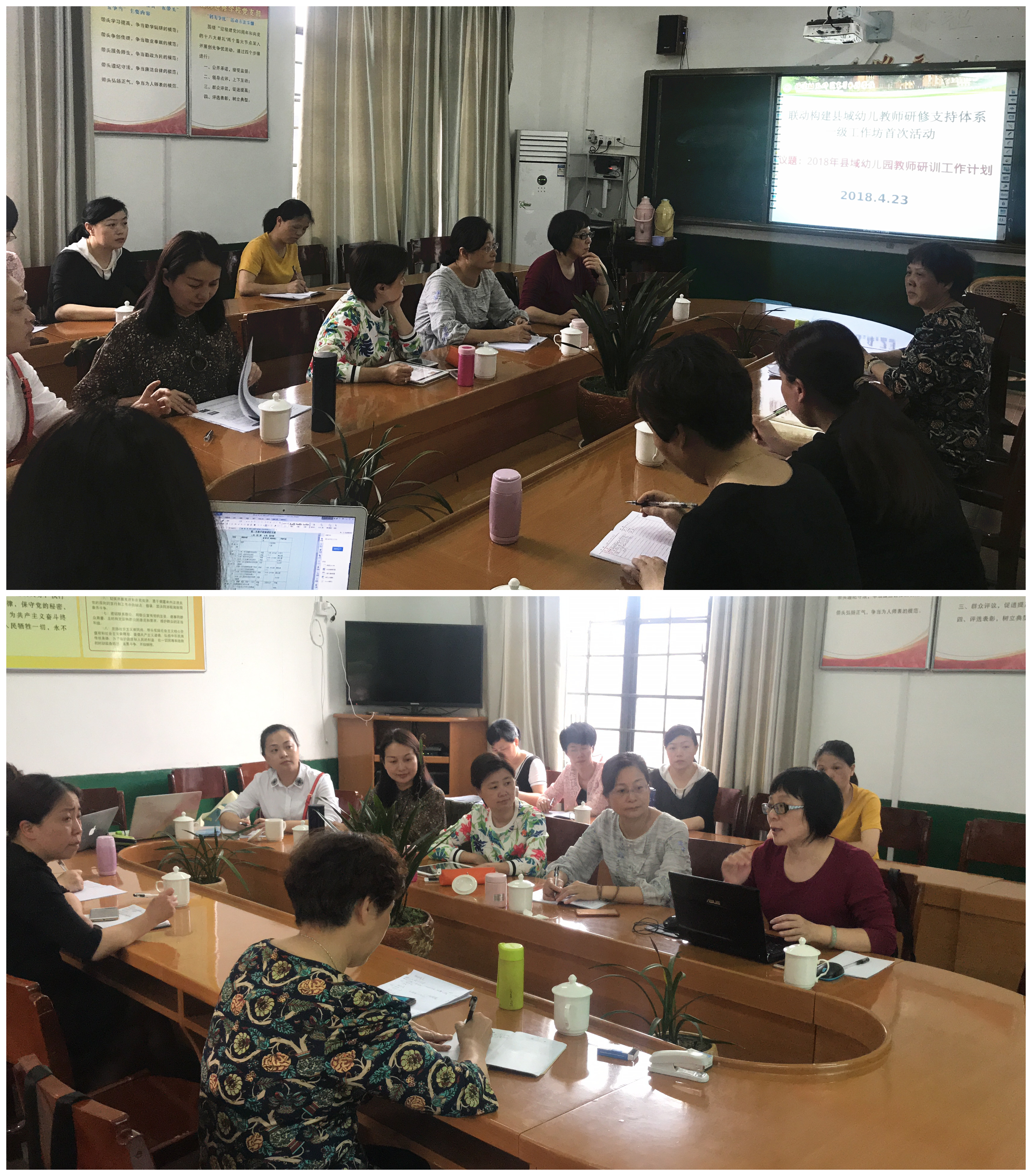 本次培训分园长、教师两个专场进行。在为期两天的研训中,我省吴丽珍名园长工作室、蔡蔚文名师工作室、隋玉玲名师工作室的成员围绕生活活动中的保教结合、游戏活动的开展、教学活动的设计与实施等内容,通过专题讲座、公开示范活动、案例分享交流等形式多样的研训活动,帮助参训教师明确了《幼儿园工作规程》《幼儿园教育指导纲要》《3-6岁儿童学习与发展指南》中的理念与要求,树立了科学的保教观念,掌握了有效的途径,为长汀县幼儿园保教质量的提升做出了富有前瞻性和实效性的指导。我校彭琦凡教授还带领培训团队,会同长汀县教育行政、教研部门、各幼教片区辅导员举行了"联动构建县域幼儿教师专业研修支持体系"一级工作坊活动,深入探讨了2018年长汀县幼儿园教师研训工作计划的方案。