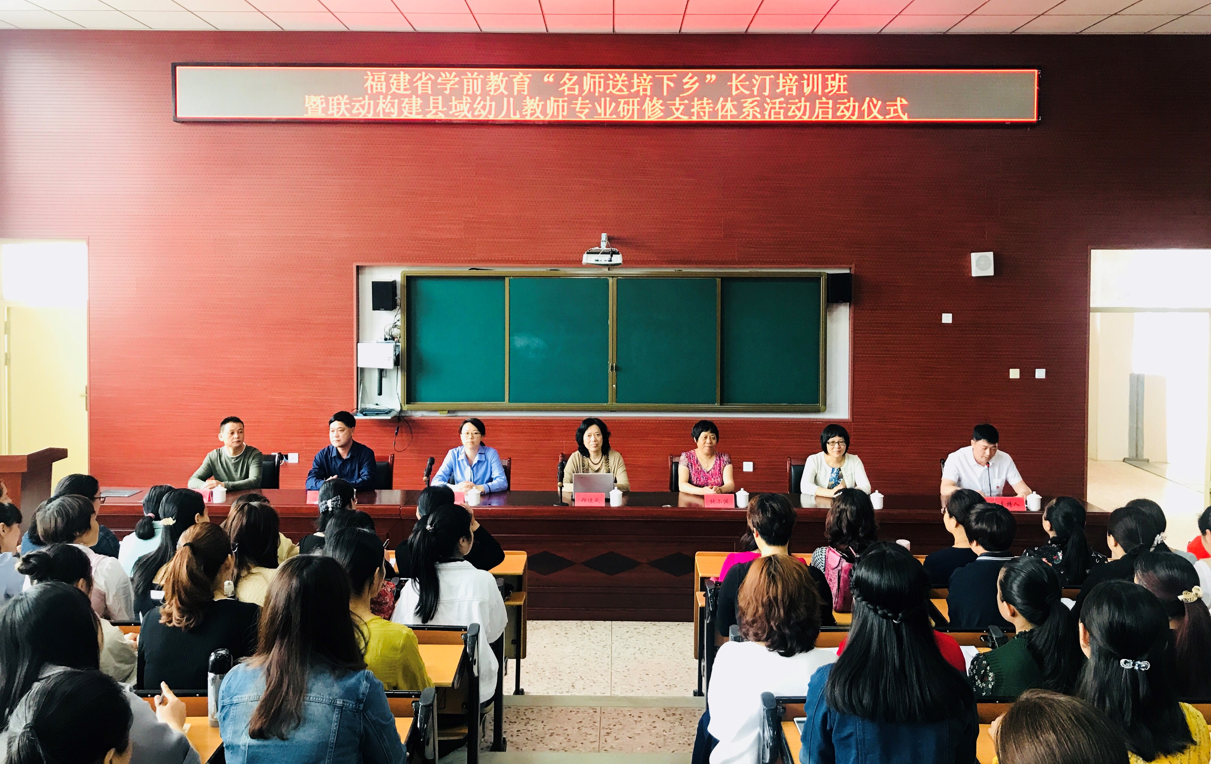 4月22日至23日,"福建省学前教育'名师送培下乡'长汀培训班"暨"联动构建县域幼儿教师专业研修支持体系活动"顺利启动并开展。我校校长郑健成、龙岩市教育局副局长林小洪、长汀县副县长廖凤英等领导、我校彭琦凡教授等讲学团专家和长汀县的317名园长、教师参加了本次活动。