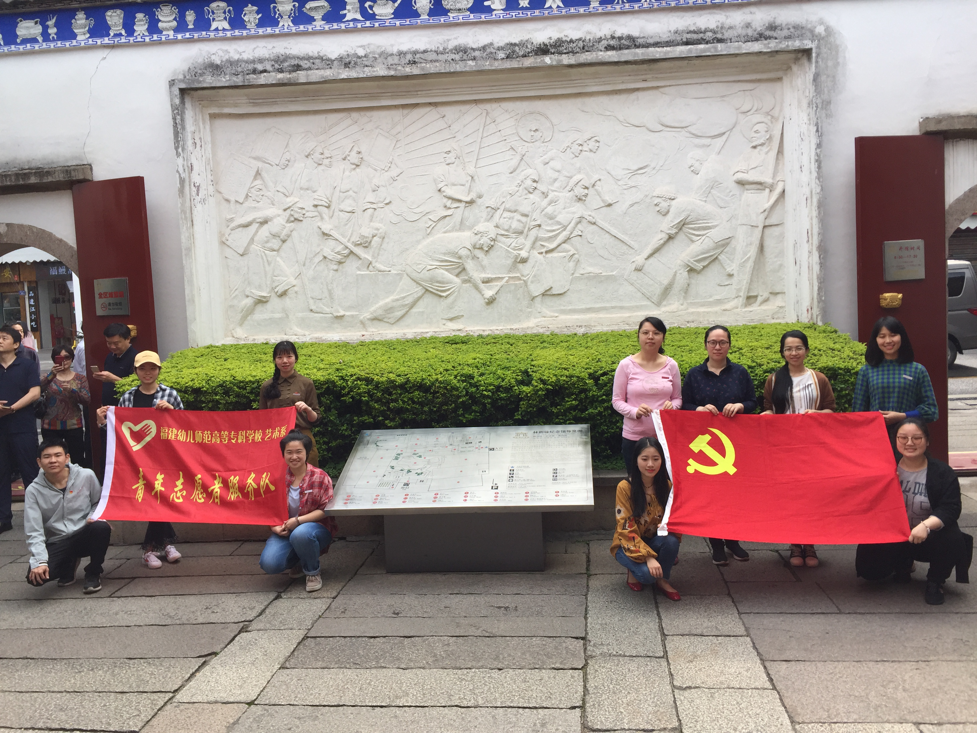 为了深入贯彻学习体会习近平同志十九大精神,进一步巩固和扩大学习实践活动成果,不断增强教育系统党的组织和党员的责任意识和服务意识,不断拓宽学生党员服务群众的渠道。于2018年4月21日艺术系学生第一党支部在林则徐纪念馆以及三坊七巷开展党日活动。艺术系学生第一党支部书记张钰老师、宣传委员王瑾老师、组织委员傅缘阳老师及支部全体党员参加了本次活动。