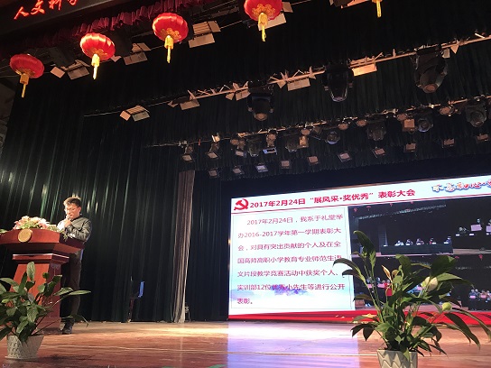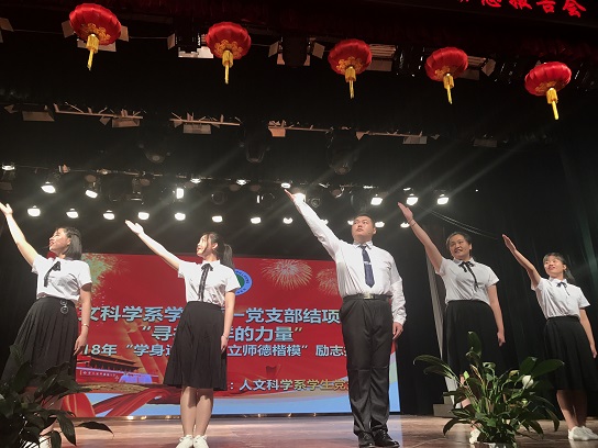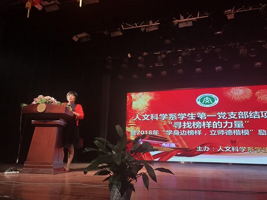 2018年4月27日18时,人文科学系在礼堂召开"寻找榜样的力量"学生党支部2016-2018学年党支部工作"立项活动"结项成果展示暨2018"学身边榜样,立师德楷模"励志报告会。校党工部黄晖部长、学工部蒋美富老师莅临本次活动,系党总支林琳书记、姜平副主任(主持工作)、系党总支周海林副书记及我系年级各辅导员参加了活动。