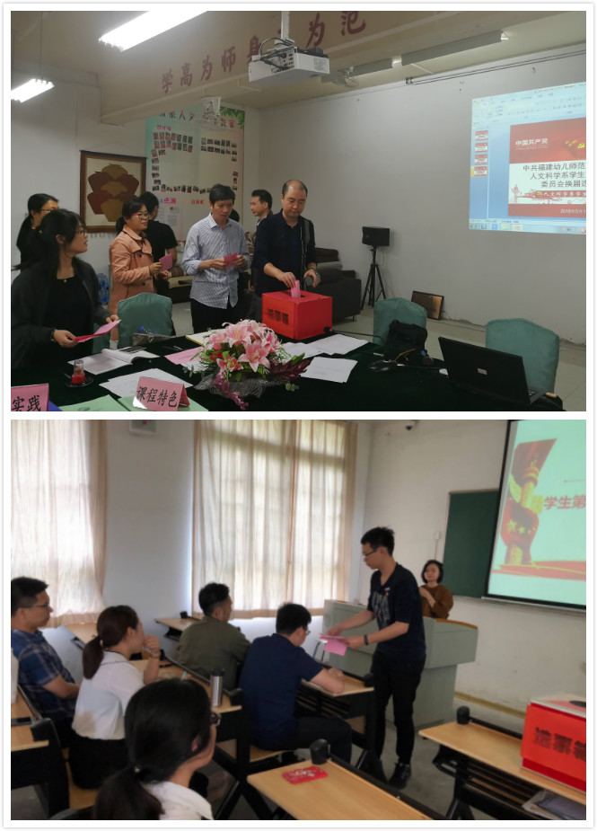 根据《关于做好基层党支部换届选举工作的通知》(闽幼高专党【2018】19号)通知精神,人文科学系教工第一党支部与学生第一党支部在系党总支的领导下,认真做好各项会前准备工作,于2018年5月11日分别召开支部党员大会进行换届选举。