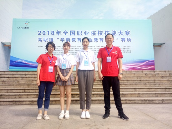 2018年全国职业院校技能大赛(高职组)"学前教育专业教育技能"赛项于2018年5月23-25日在浙江金华职业技术学院举行,全国共58个职业院校代表队参赛。我校由学前教育系游戏教研室主任陈莹老师、音乐教研室黄涌智老师带队参加。