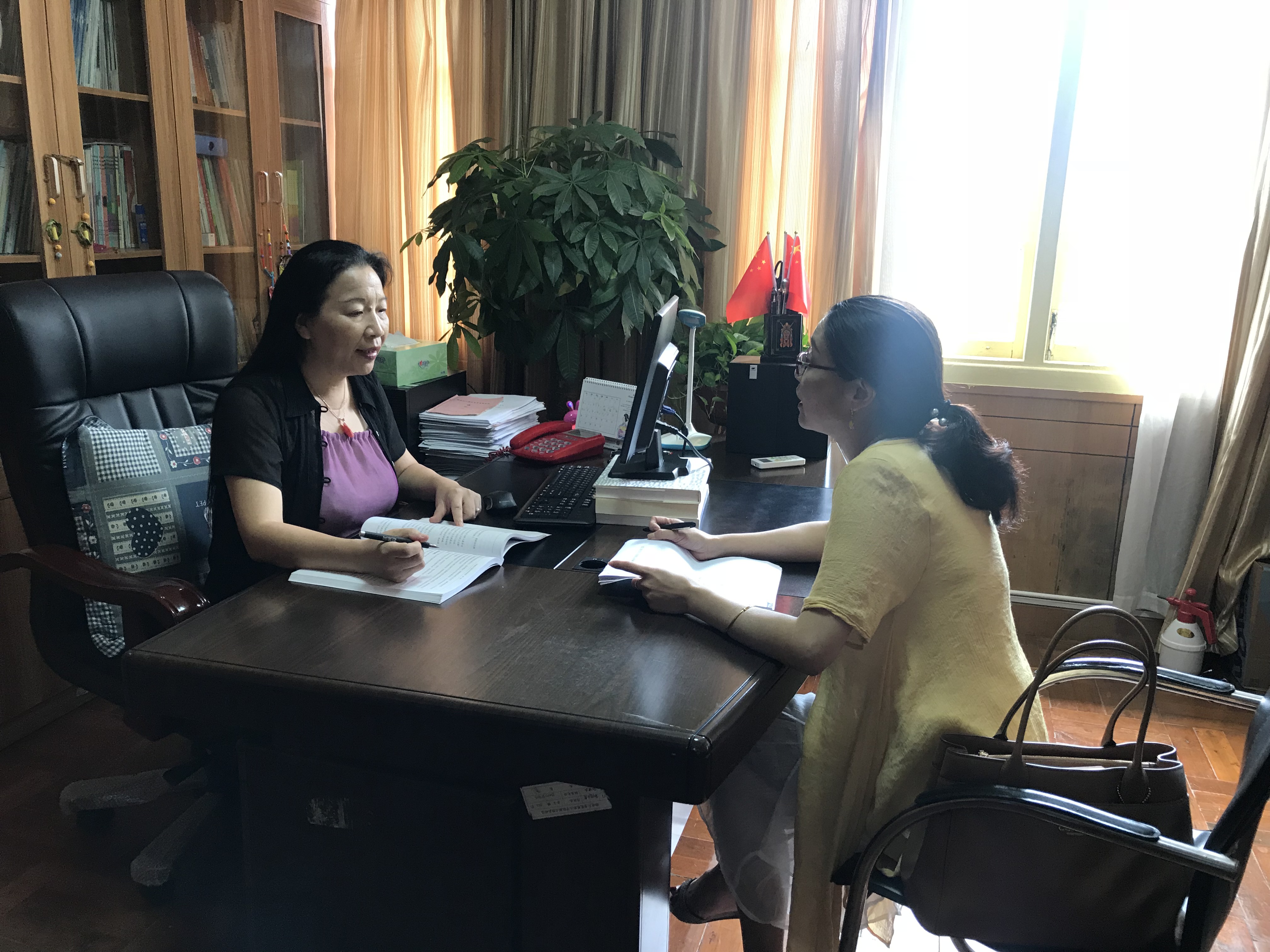 郑晓生副校长(左)与艺术系书记、主任王萍萍(右)在研讨