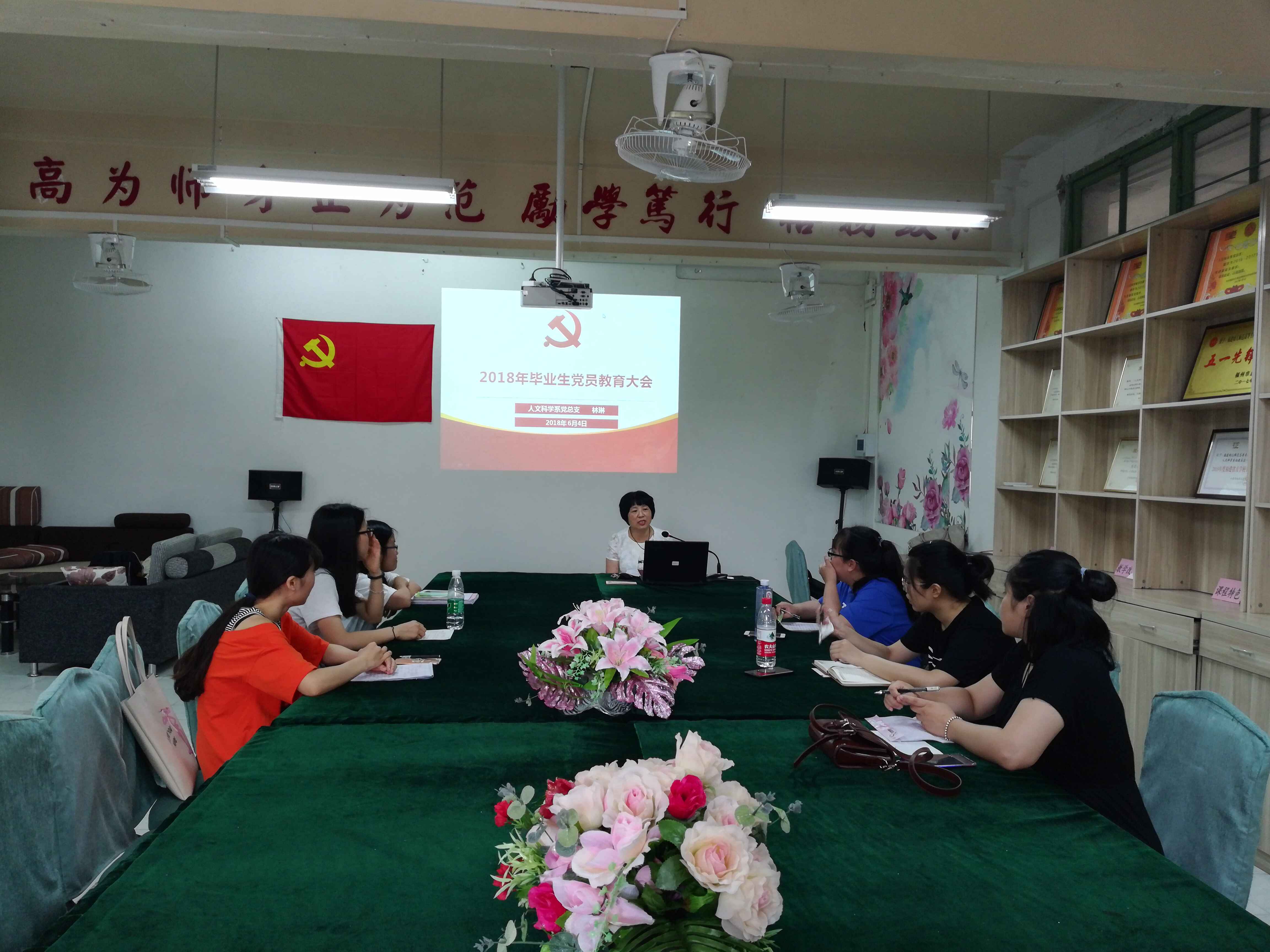 为使毕业生党员在文明离校工作中起到表率作用,在走向新的学习工作岗位后,保持共产党员先进性,2018年6月4日下午,人文科学系开展毕业生党员系列教育活动。