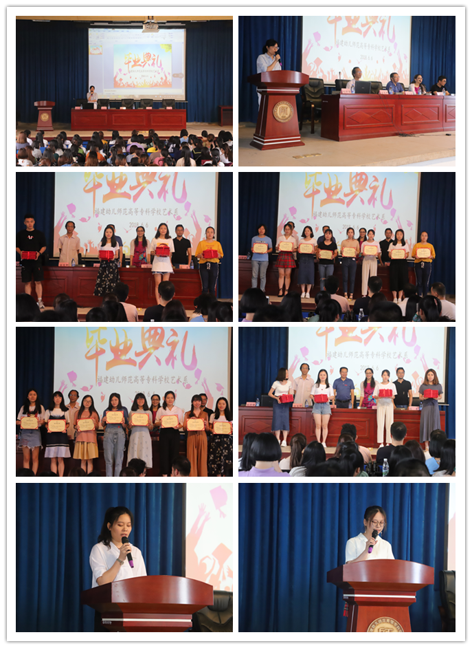 六月是多彩的岁月,六月是放飞梦想的岁月。2018年6月6日上午10时30分"艺术系2018届毕业典礼"在我校图书馆报告厅隆重举行。校党委书记鲍仕梅书记,艺术系主任、党总支书记王萍萍教授,艺术系副主任林俊卿副教授,艺术系副主任陈青副教授,艺术系党总支副书记刘舒敏老师,艺术系学生第一党支部书记张钰老师,艺术系团总支书记陈锋华老师及全体2018届毕业生到场参加了本次毕业典礼。