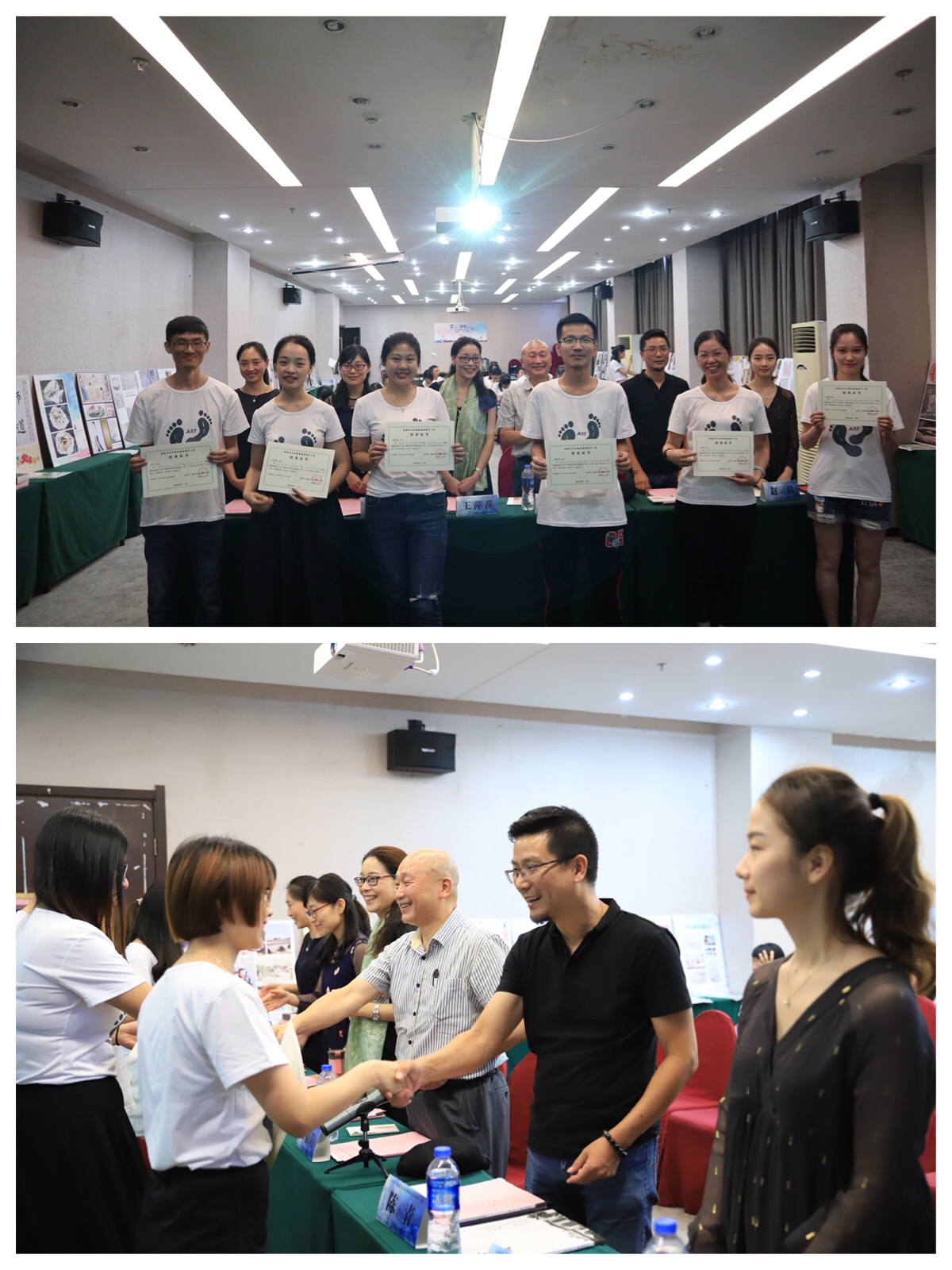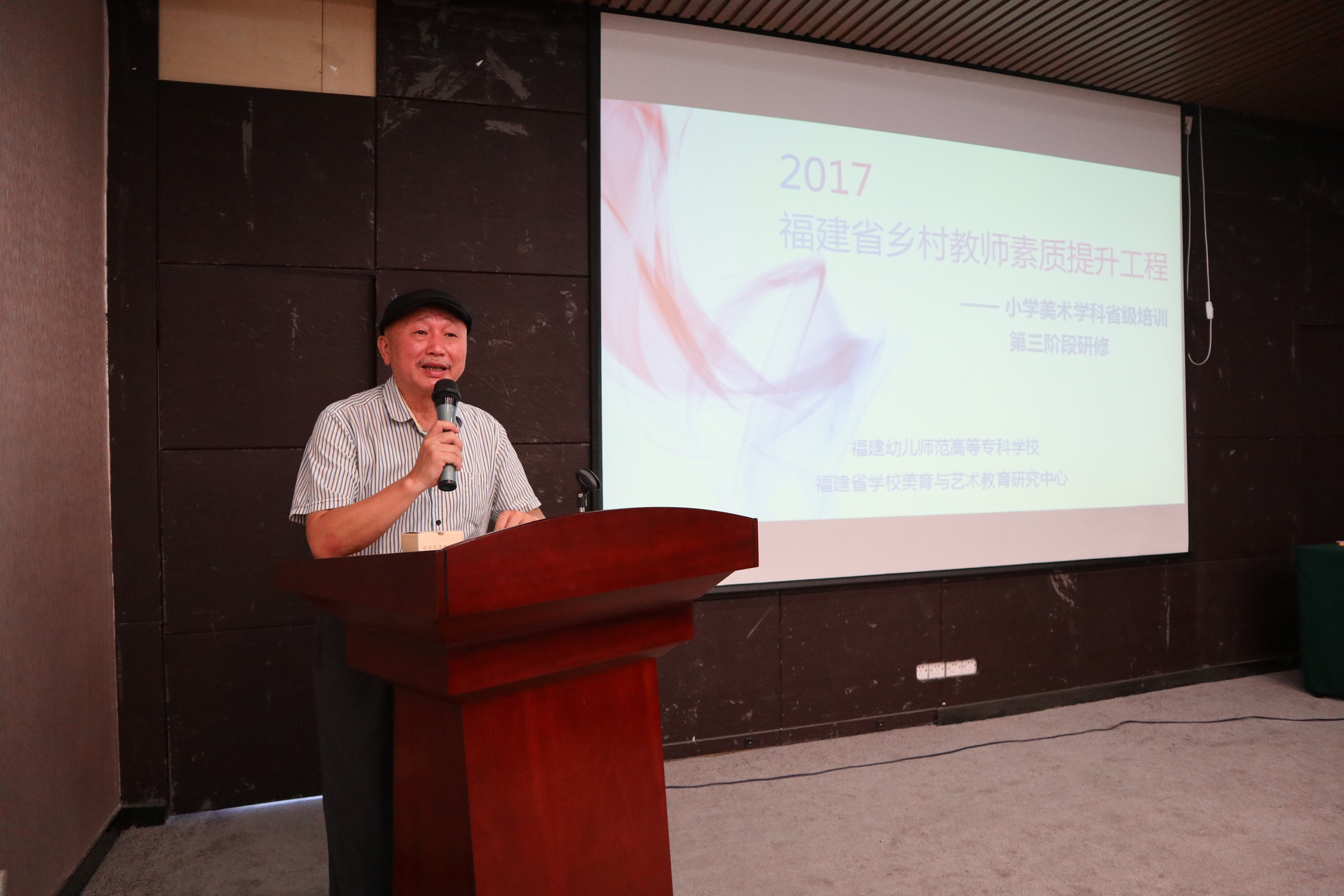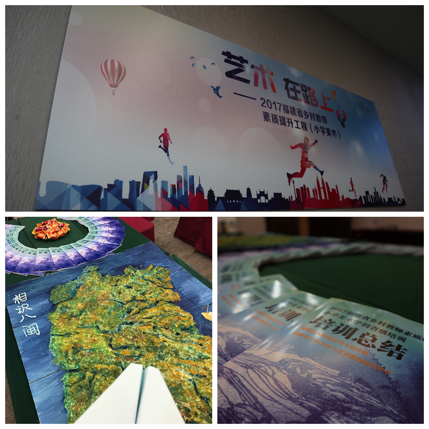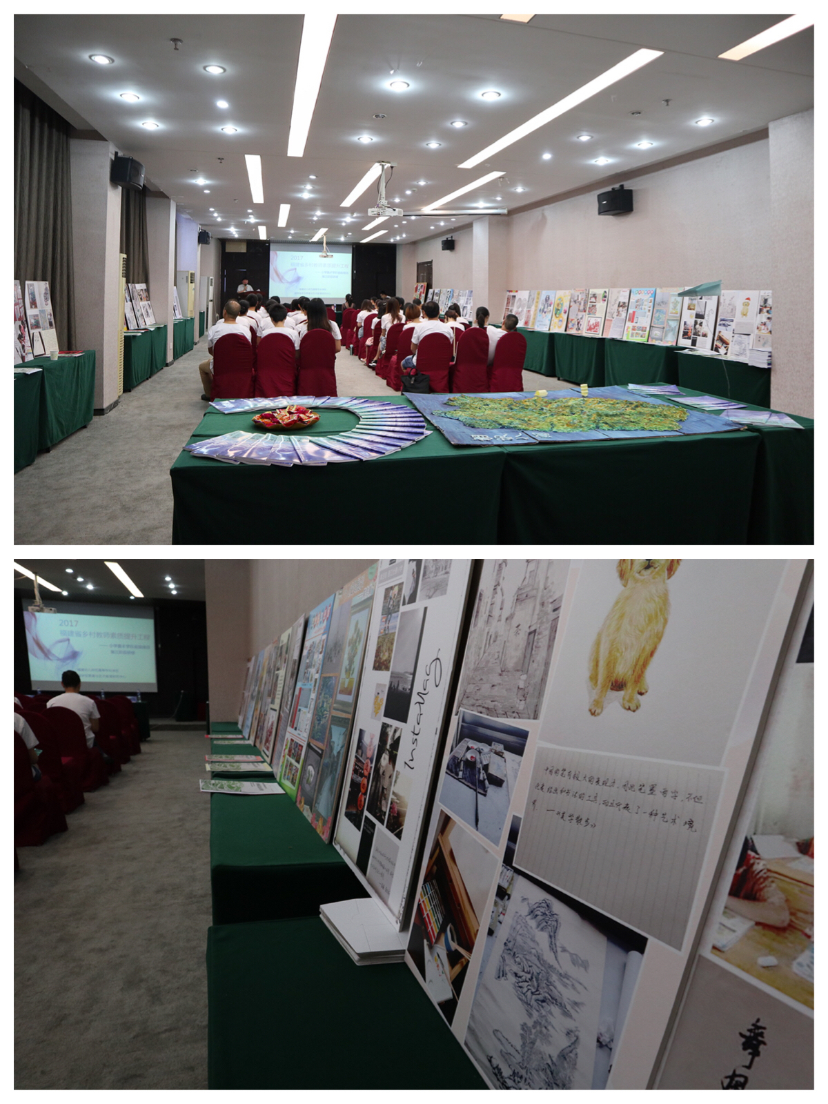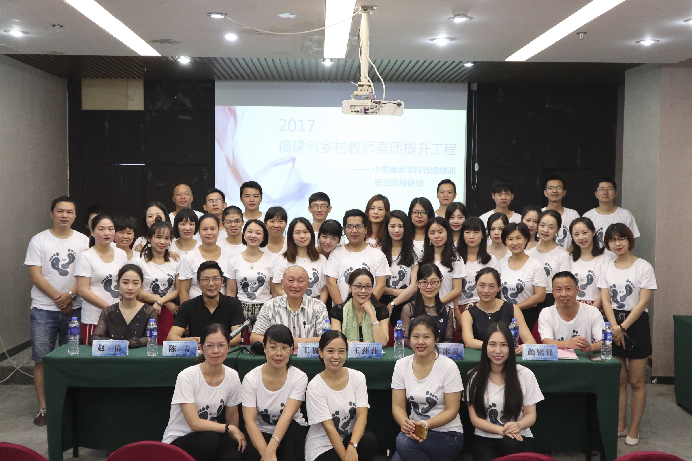 2018年6月8日,2017福建省乡村教师素质提升工程—小学美术学科省级培训班以"艺术在路上"为主题的结业仪式在教育新濠酒店举行。福建省学校美育与艺术教育研究中心主任、教育部国培专家、本培训项目首席专家王福阳教授,福建幼高专艺术系党总支书记、系主任、省美艺中心副主任王萍萍教授,艺术系副主任陈青副教授,福建幼儿师范高等专科学校培训中心副主任许冰灵老师,培训团队及全体学员参与了本次结业仪式。