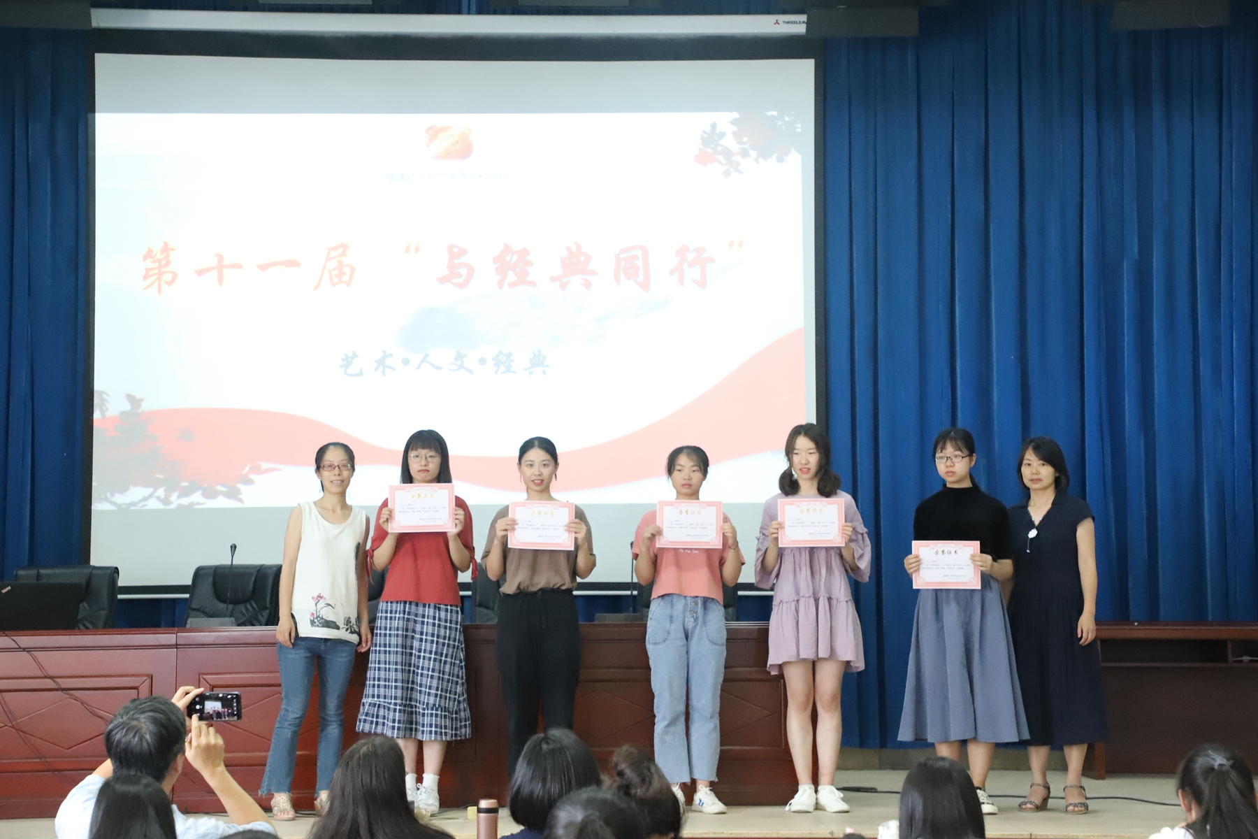为培养学生的自主学习能力,提升学生的文学品鉴能力、思辨能力和表达能力,由校公共教学部主办、校团委承办的"与经典同行"——校第十一届"艺术•人文•经典"读书报告会决赛于2018年6月8日在图书馆学术报告厅举行。公共教学部公共中文教研室张航、苏萍、兰芳、王珮雯、杨晨老师担任本次决赛的评委,全校2017级近200名学生共同参加了本次活动。
