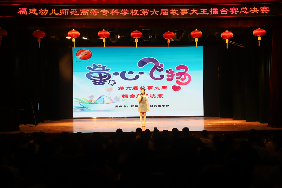 2018年6月11日晚,校语委和公共教学部在仓山校区礼堂主办"童心飞扬"第六届故事大王擂台赛总决赛。经各系初赛推选,来自全校的16名选手参加本次总决赛。最后,由学前教育系的陈婕妤夺得了"故事大王"的桂冠。