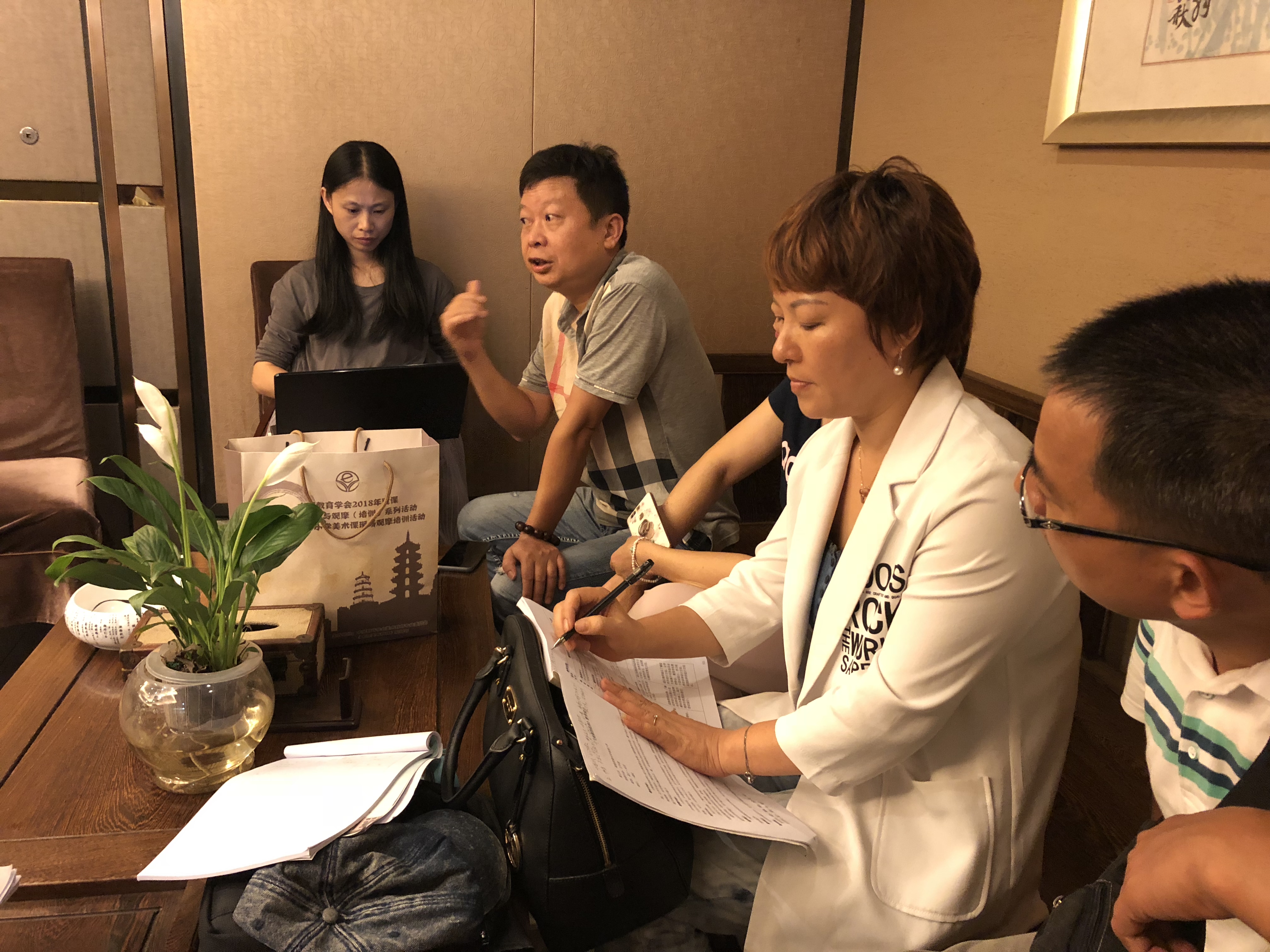 高质量高规格的课堂教学展示终究要结束了,可大家研究的热情依然高涨。我们利用最后一晚的时间,开展了小型座谈交流会。讨论在班主任的诱导下渐入佳境,从课程设计到教师引领,学生反馈到作业生成,各疏己见,互动分享,学员们表示有这样的团队精神和学习共同体真是令人感到欢欣鼓舞。