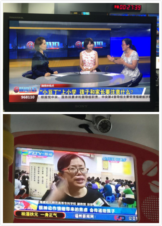 徐晋华副教授的观点也引起了福州电视台的关注,福州电视台"新闻110"栏目对她进行了采访,并邀请她做客直播间与麦顶小学一年级段长黄志兰老师一起为家长答疑解惑。该期电视节目在福州电视台及福州公交移动电视上播出。