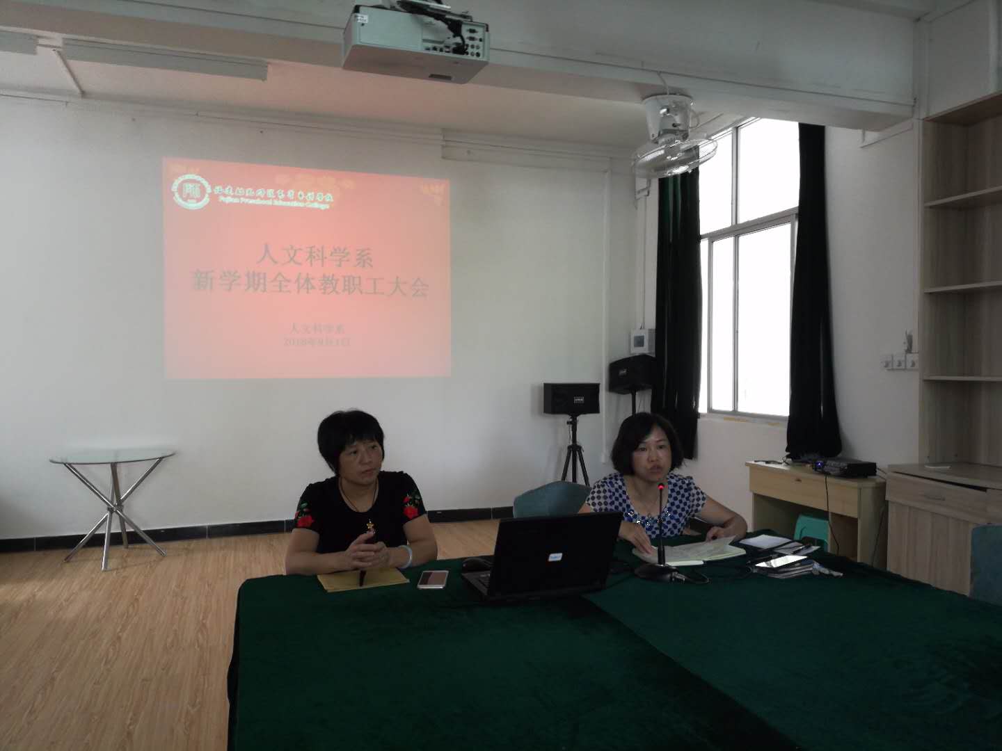 2018年9月1日上午,我系在系会议室召开人文科学系2018-2019学年第一学期期初工作会议。我系全体教师参会。会议由主持系工作的姜平副主任主持。