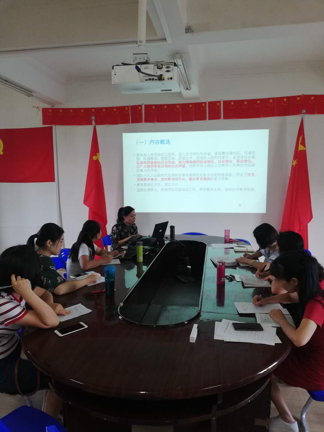2018年9月21日下午,马克思主义学院于系办601会议室组织全体教职工开展2018年9月政治理论学习。此次学习由高雯婷老师主讲。