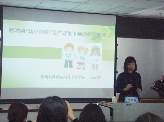 2018年10月13日,我校学前教育系主任吴丽芳教授应邀在"第三期全国幼儿园骨干园长高级研修班"上,作题为《新时期幼小衔接工作背景下的师幼关系解读》的专题讲座。