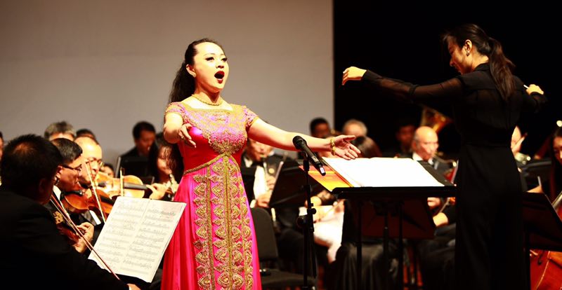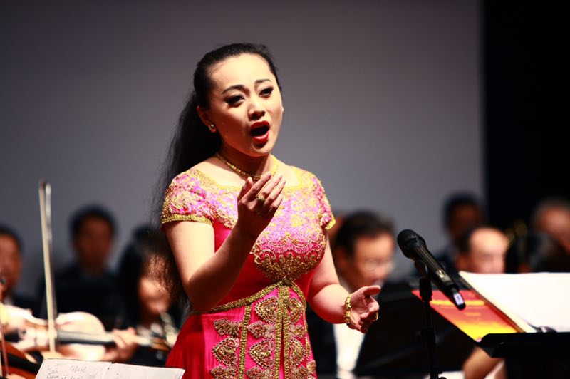我校优秀校友青年歌唱家陈思曼受邀参加此次演出,她独唱的《我爱你,中国》将音乐会推上了高潮。这首歌是电影《海外赤子》的主题歌曲,表达了海外游子对祖国的满腔热爱赤诚,这与女高音歌唱家陈思曼常年旅居海外对祖国的赤诚之心不谋而合。她那宽阔高昂的美妙歌声,将对祖国的美好深情表达的一片赤诚,许多听众热泪盈眶。