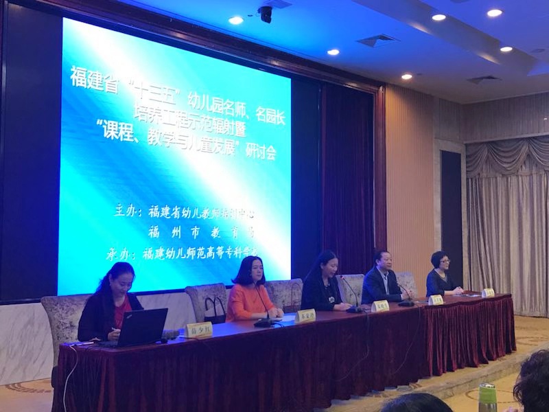 为推进福建省"十三五"幼儿园名师名园长培养工程中期培养成果辐射共享,服务属地学前教育发展,10月17日至10月18日,由福建省幼儿教师培训中心、福州市教育局、福建幼儿师范高等专科学校联合举办的福建省"十三五"幼儿园名师名园长培养工程中期培养成果联动辐射暨"课程、教学与儿童发展"研讨会在福州隆重举办。福建幼儿师范高等专科学校郑晓生副校长、福州市教育局汪孝敏调研员等领导以及福建省"十三五"幼儿园名师、名园长、学科教学带头人、名园长后备培养人选等4个班次学员、福州各区县园长、教师等近300位代表参加了本次研讨会。