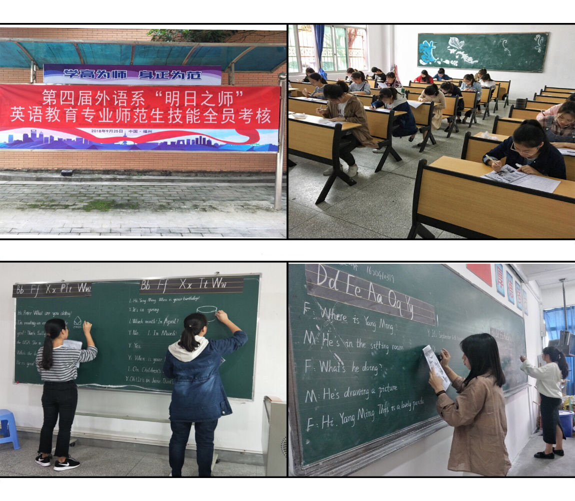 外语系实训教研室、小学英语教研室联合开展16级英语教育专业师范生技能全员考核。2018年10月12日,外语系丁天华主任在动员会上强调了师范生技能考核的重要意义,也揭开了本年度外语系师范生技能全员考核的序幕。2018年10月19日下午,外语系20位专任教师本着对学生高度负责的态度对133名英语教育专业毕业班学生进行了为期半天的分组考核。