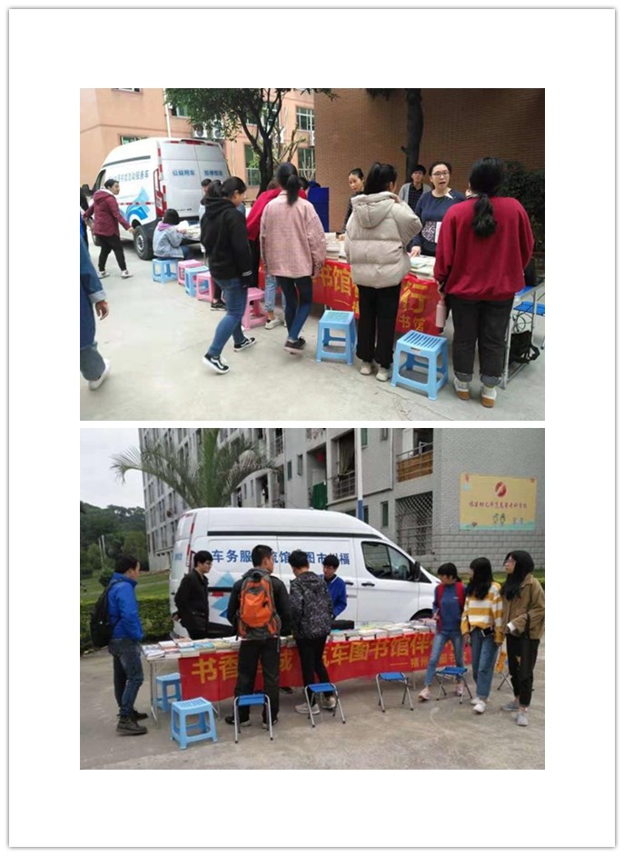 11月23日下午,福州市图书馆流动服务车满载各类图书再次来到金山校区开展借阅服务。这是继14日到铜盘校区服务后又一次为我校服务。