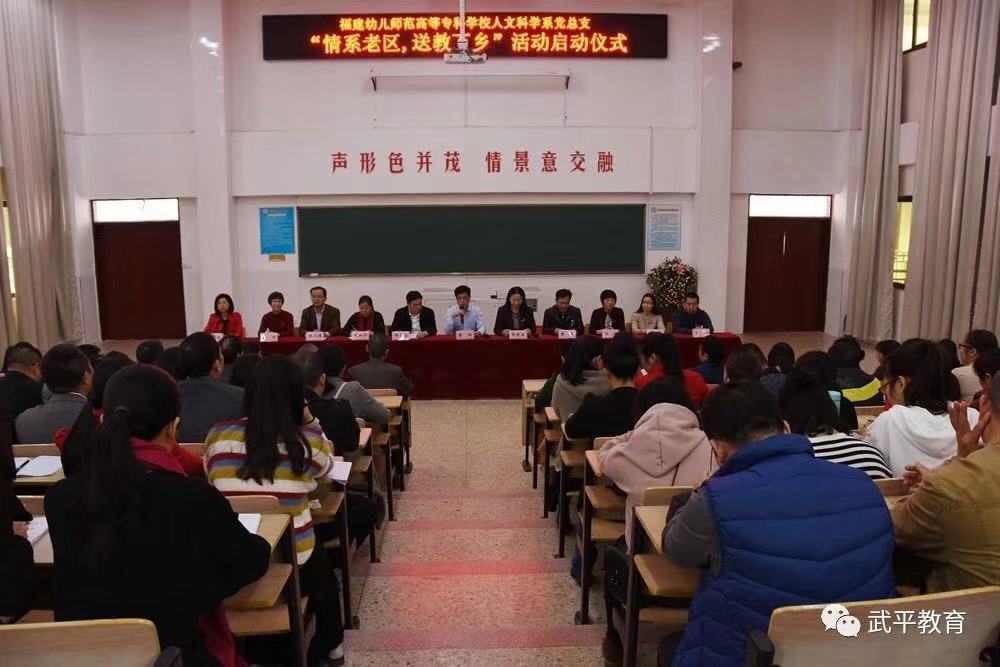 11月23日,人文科学系党总支教工党支部开展"情系老区 送教下乡—走进武平"活动启动仪式在武平县第二实验小学举行。校党委委员、副校长郑晓生教授、校党工部黄晖部长等一行7人和武平县人民政府副县长蔡鹏、县教育局党组书记、局长邓占通,县教育局、教师进修学校有关领导,以及进校小学教研室全体语文教研员,城区小学全体语文、美术教师,城区学校心理健康教育教师和农村中心学校语文骨干教师代表等共300余人参加了启动仪式。