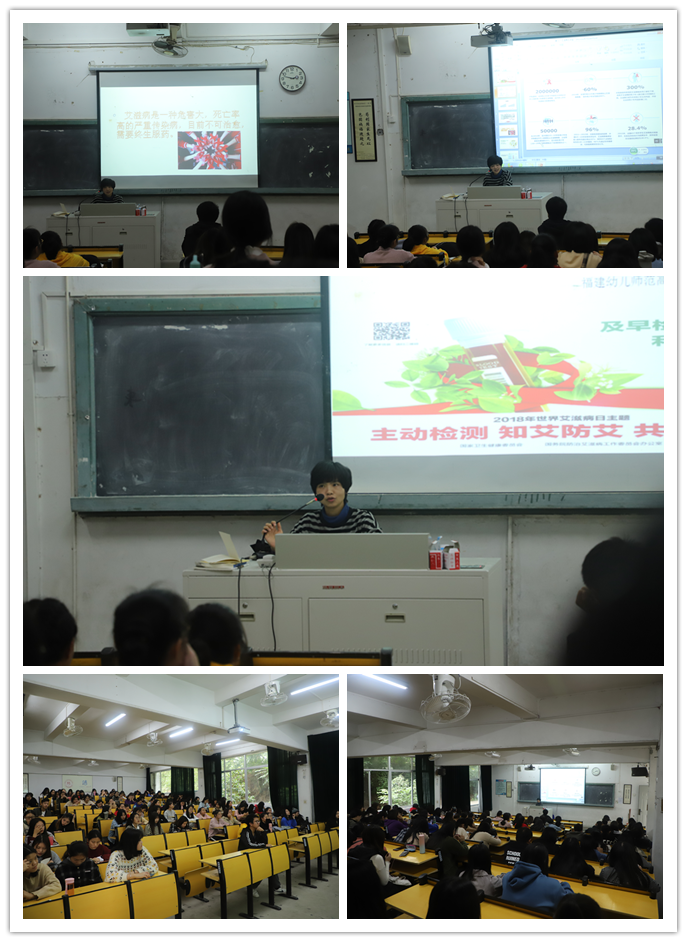 为了普及艾滋病防治知识,增强我系学生的艾滋病防范意识。2018年11月30日下午我系在校教学楼A103举办了"知艾防艾,共享健康——第31个世界艾滋病日专题讲座"。本次讲座特别邀请了我校医务室陈甦医生主讲,艺术系18级全体学生到场聆听。