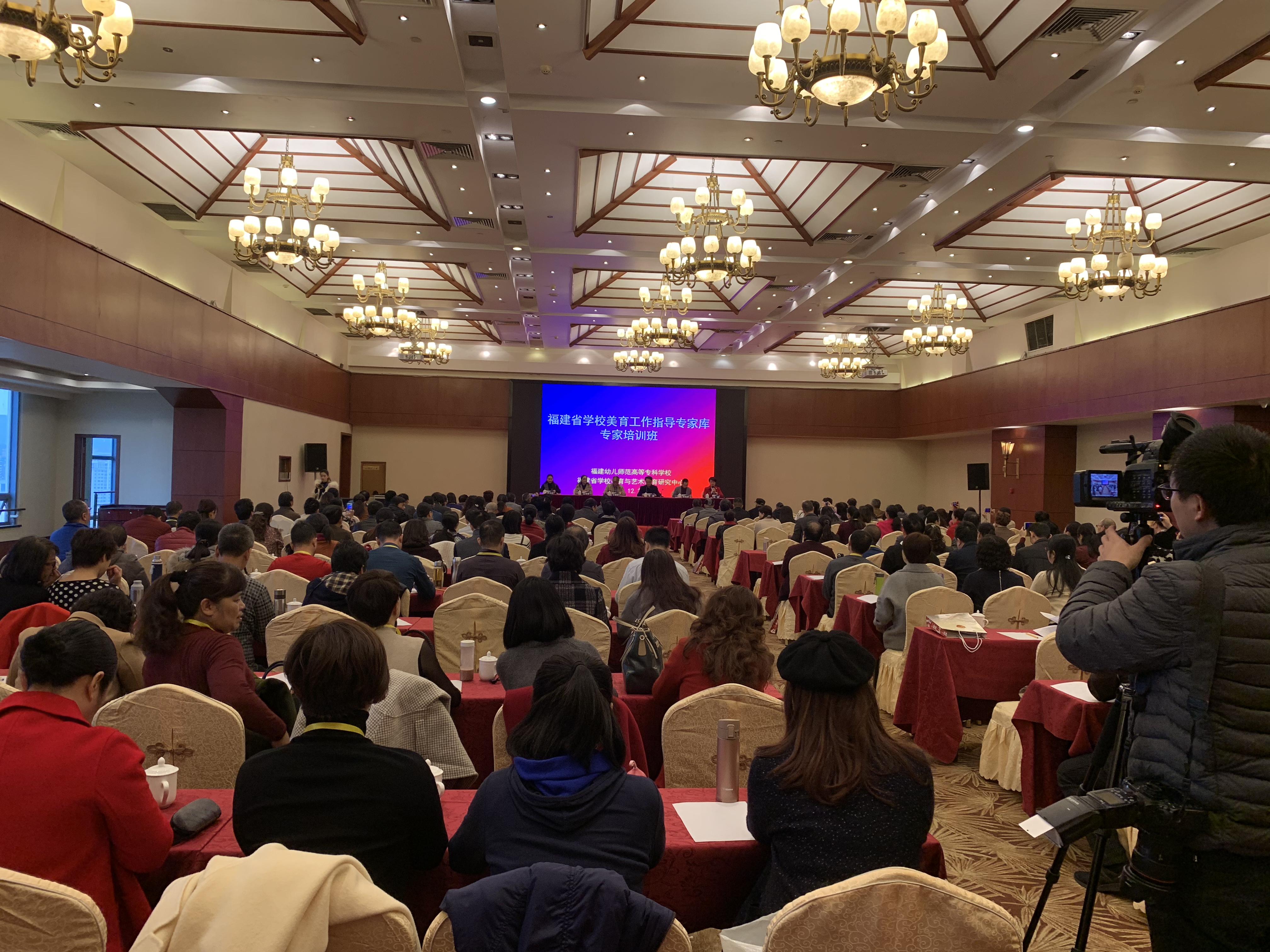 12月12日-14日,福建省学校美育专家库专家培训班在福州市景城大酒店举办,来自全省各地的200余名美育专家参加了此次培训。13日上午的开班仪式上,福建省教育厅体育卫生艺术教育与语言文字处叶灵处长、福建幼儿师范高等专科学校鲍仕梅书记、陈峰校长莅临现场,并先后致欢迎辞。本次培训班由福建省教育厅主办,由福建幼儿师范高等专科学校、福建省学校美育与艺术教育研究中心承办。