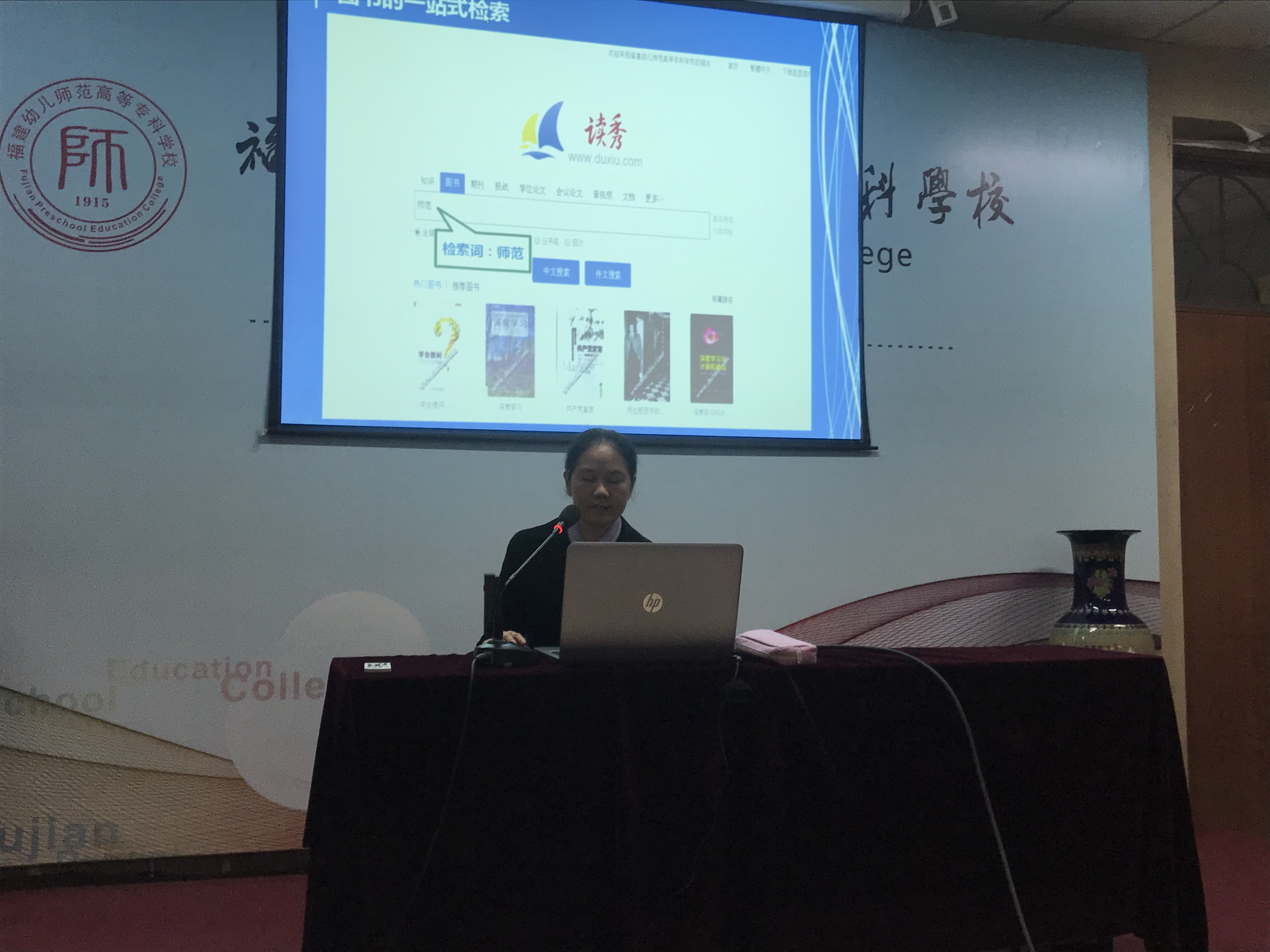 校图书馆馆长胥文玲教授作"校图书馆资源使用"专题讲座
