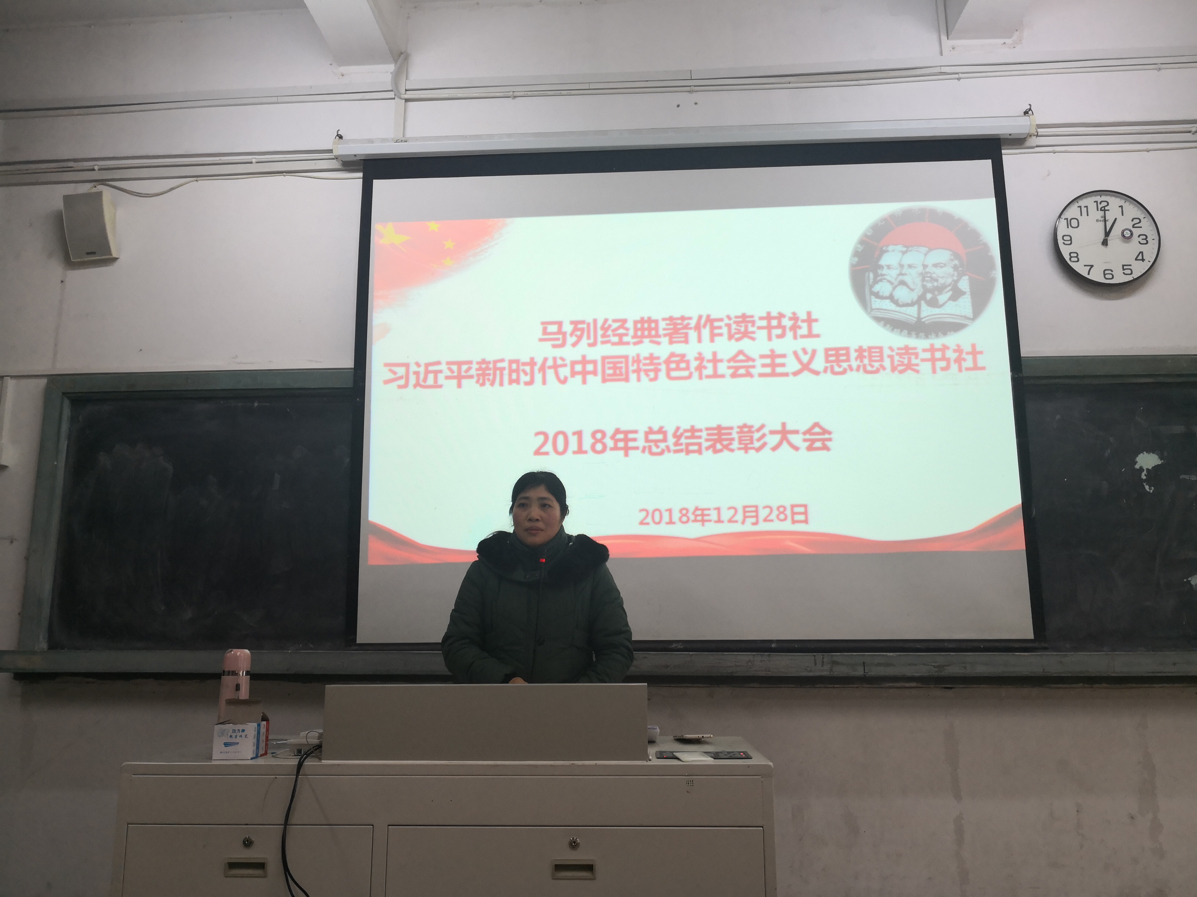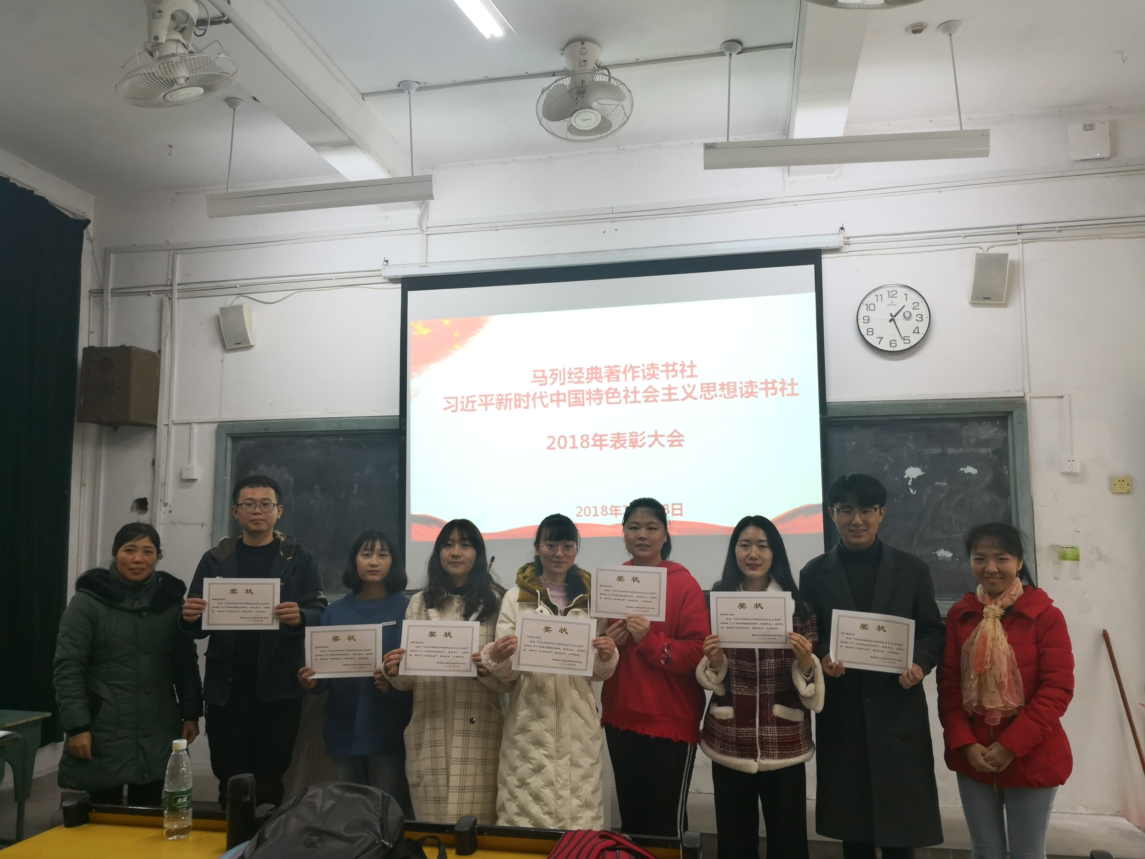 12月28日中午,我校习近平新时代中国特色社会主义思想读书社在教学楼A栋105教室顺利召开了读书社2018年年度工作总结暨表彰大会。马克思主义学院郑丽萍老师、郑舒丹老师、高雯婷老师及读书社全体成员参与。
