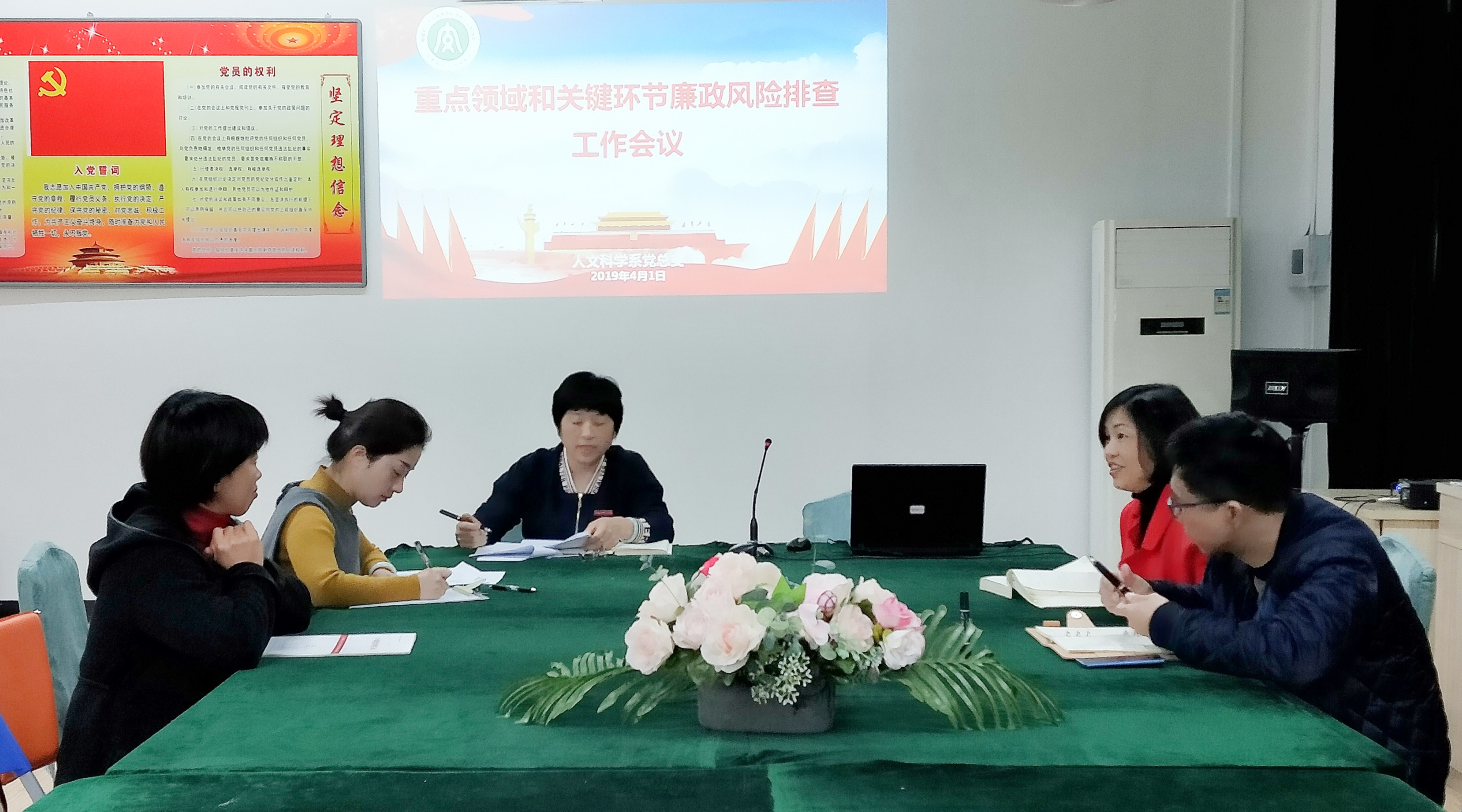 4月1日,人文科学系党总支召开落实重点领域和关键环节廉政风险排查工作专题会议,系党总支委员及系主任姜平参加会议,会议由系党总支书记林琳主持。
