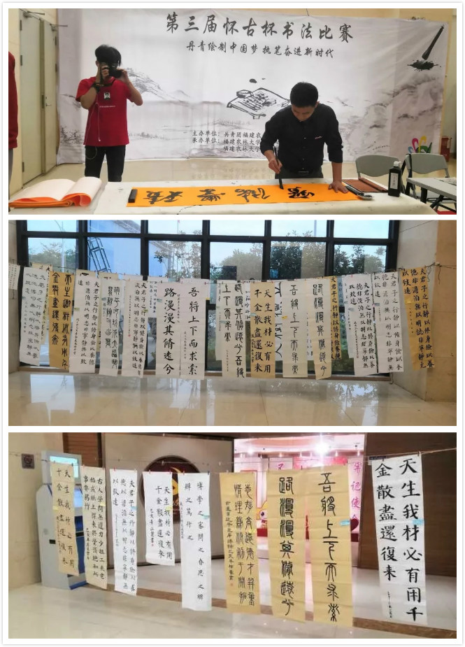 4月27日,我校人文科学系墨苑书社8名社员来到农林大学金山学院,参加福建农林大学金山学院"丹青绘制中国梦,执笔奋进新时代"第三届怀古杯书法比赛,与来自闽江学院、船政职业交通学院等高校选手同台竞技。