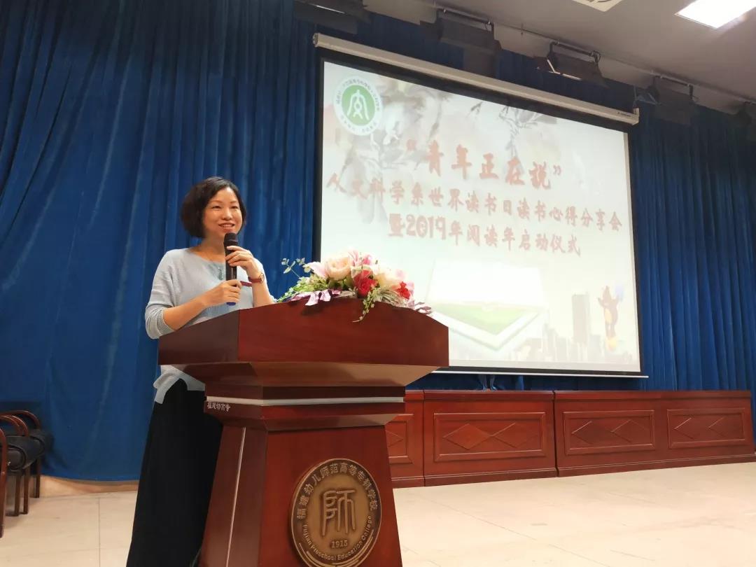 接着由姜平副主任阐明本次活动的意义及2019阅读年活动的内容、要求及活动规则。她倡导"读书不止 不止读书"的理念,鼓励同学们读一辈子书,提醒同学们读书时不要仅满足于获得多少知识,懂得多少道理,更要在阅读中思考、体悟、践行,在实践中改变行为,解决问题,升级能力。