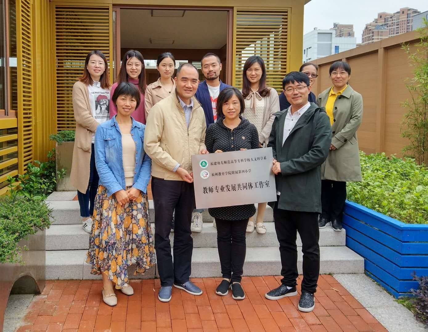人文科学系姜平副主任为福州教育学院第四附属小学黄权校长、吴志城副校长授牌,两校的语文、数学、科学、书法、艺术、教育学、心理学的学科教师分别结对子,共有17名教师成为"教师专业发展共同体"工作室的首批成员。他们分别是: