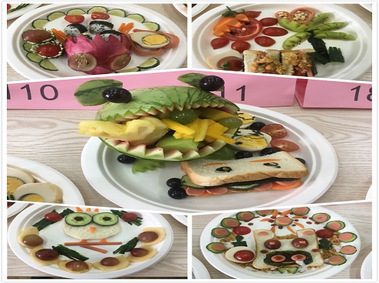 本次比赛面向2018级学前教育专业、早期教育专业、特殊教育专业和健康专业的全体学生。竞赛包括必答客观题、美食中的营养学知识、食物营养素两两比较和营养配餐比赛四个环节。比赛中,来自各专业班级的18支队伍用胡萝卜、黄瓜、海苔、鸡蛋、米饭、吐司和水果等食材精雕细琢,将主题突出、色彩艳丽、造型别致的营养配餐作品呈现在大家面前,并对作品的营养价值、造型创意进行解说,引来现场师生们的掌声和喝彩。经过四个环节比赛的激烈角逐,最终6支参赛队伍胜出:学前18109班获一等奖,学前18111班、学前18113班获二等奖、早教1811班、学前18110班和健康1811班获三等奖。
