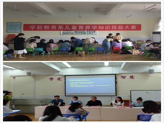 为贯彻落实《国民营养计划》,践行《"健康中国2030"规划纲要》,提升大学生营养认知,同时推进"教学研训一体 全程能力递进"学前教育专业实践教学改革,充分利用我校生产性实训基地的实训资源,支持学前教育专业学生专业发展,2019年5月17日,学前教育系成功举办了师范生教学能力创新大赛之儿童营养学知识技能竞赛。本次大赛特邀我系幼儿发展与健康管理专业(以下简称"健康专业")负责人叶圣军副教授,健康专业教研室主任王笑梅老师、专业教师陈乃溦老师,早教教研室专业教师林建宇老师和舞蹈教研室专业教师袁佳丽老师担任本次比赛的评委。